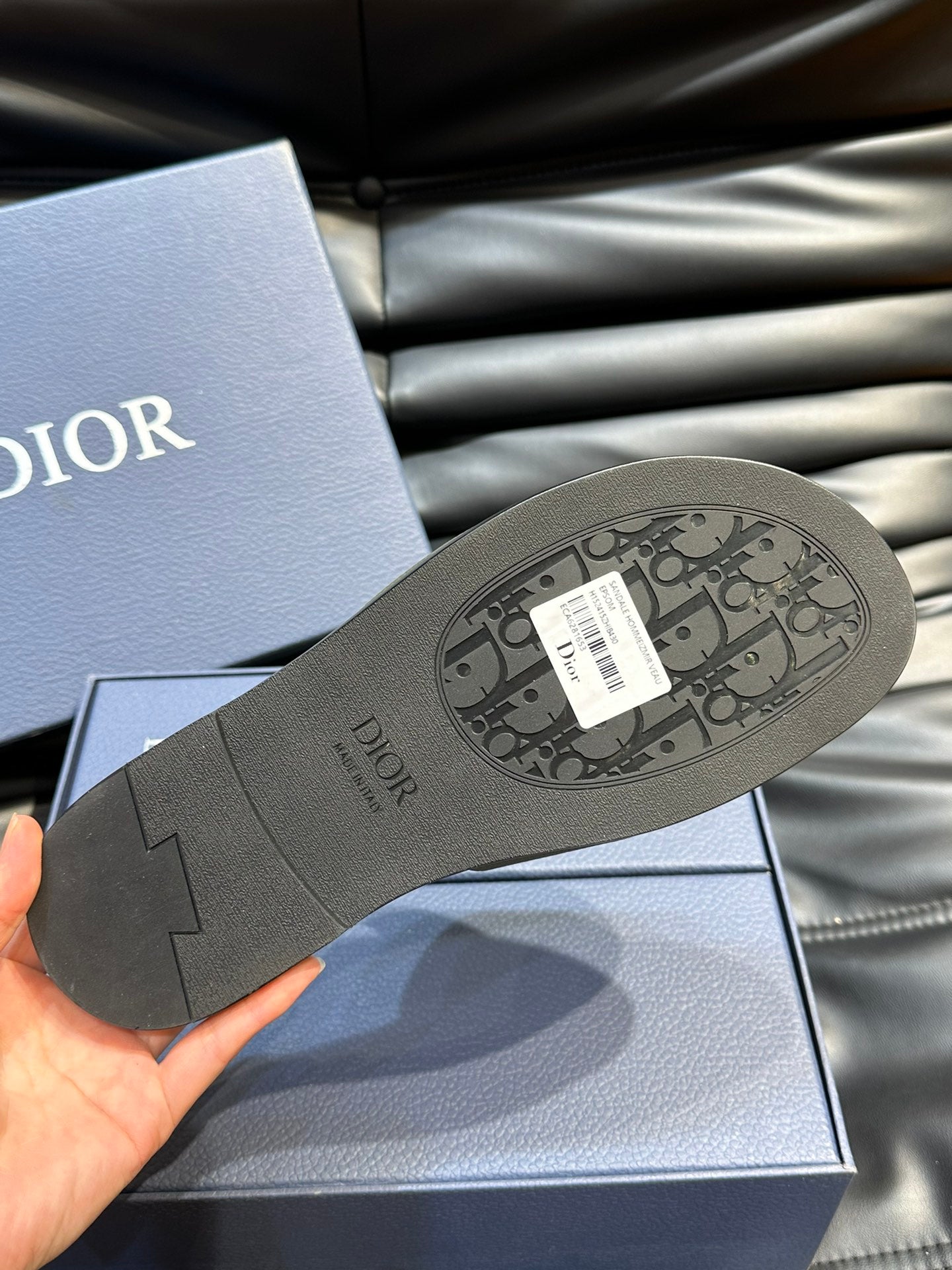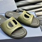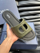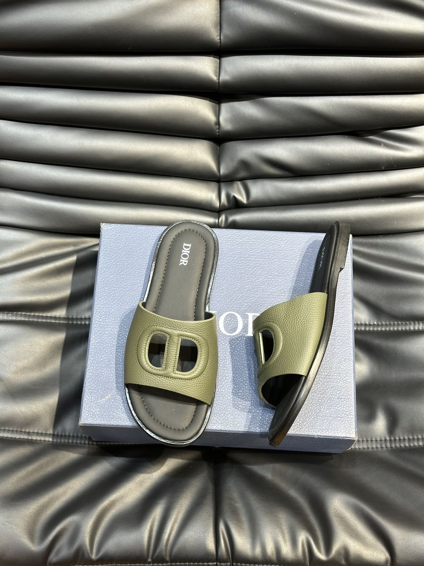 CD D-CLUB SLIDE SLIPPER OLIVE-JUNIPER GRAINED CALFSKIN