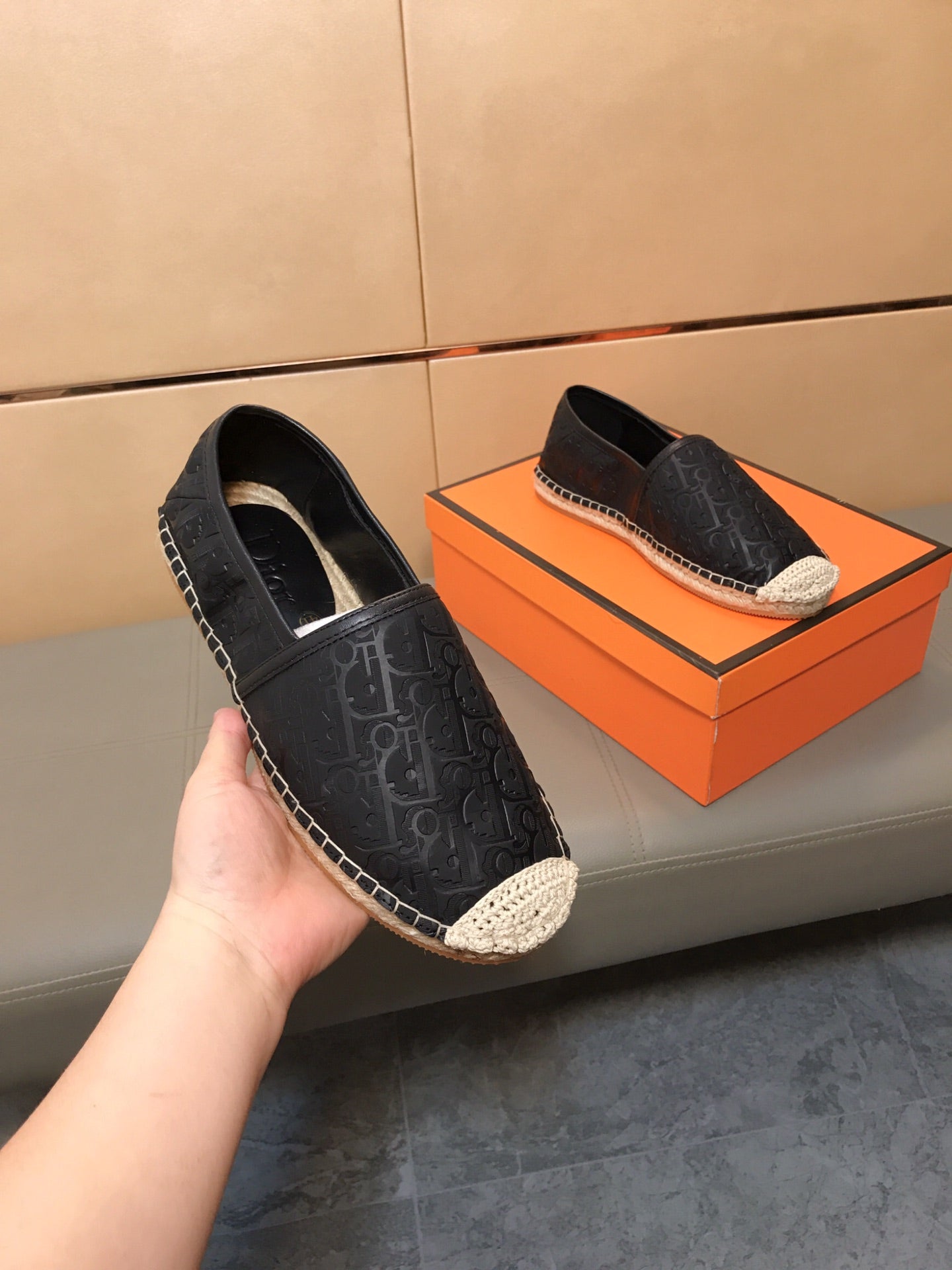 CD PARADISE ESPADRILLE LOAFER BLACK EMBOSSED CALFSKIN