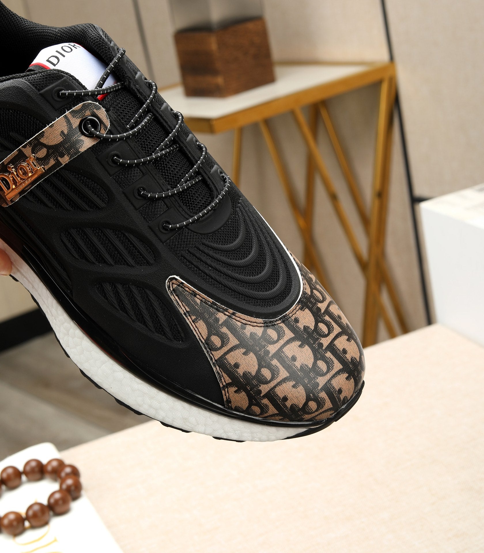 CD RUNNER SNEAKER BLACK AND DUSTY ROSE CALFSKIN