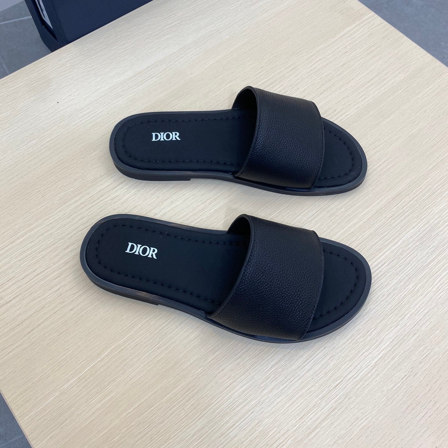 CD SLIDE ALIDAS SLIPPER BLACK GRAINED CALFSKIN