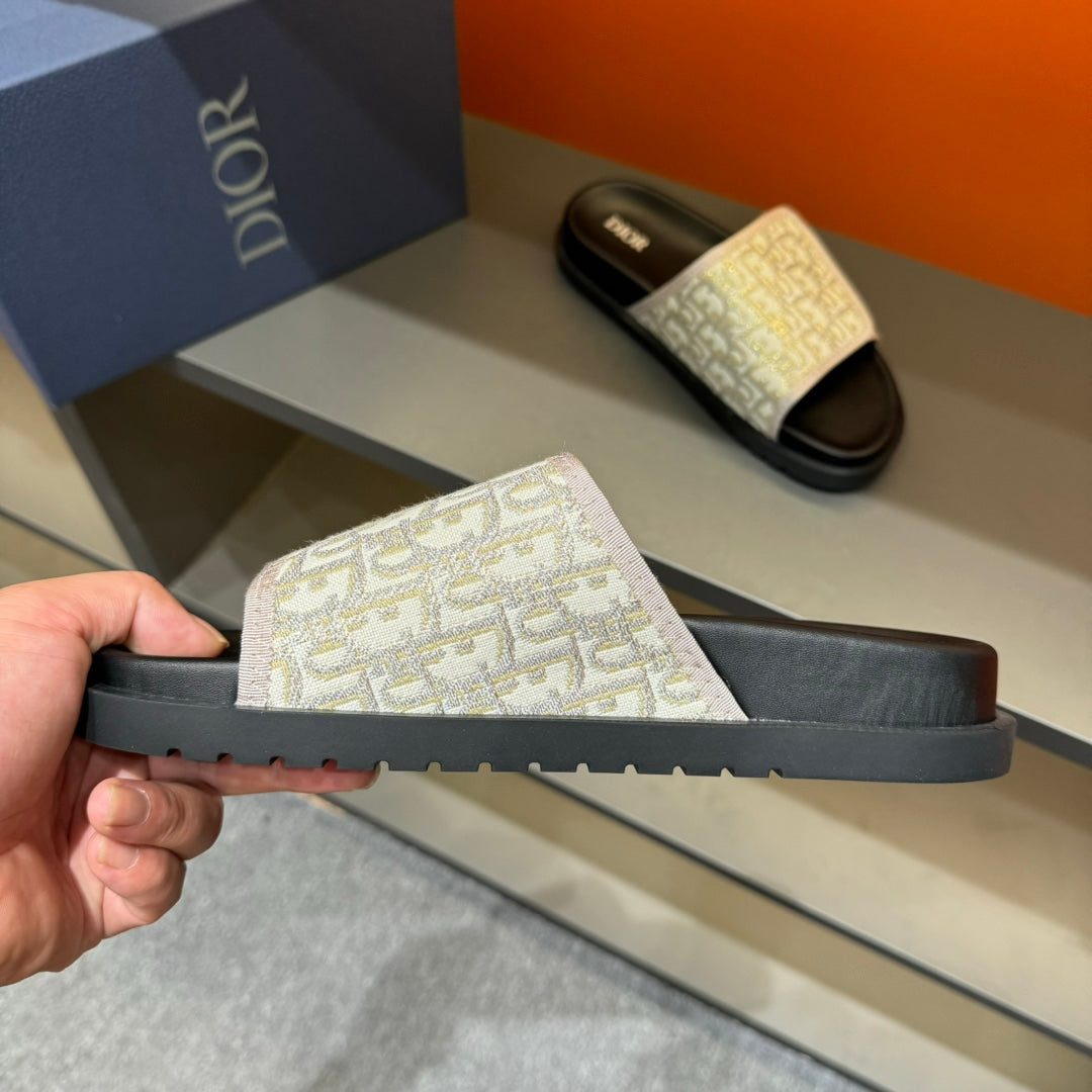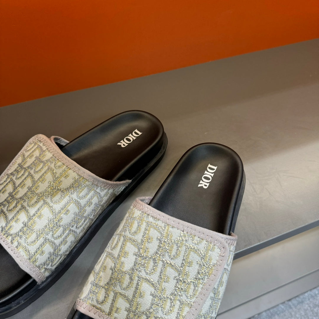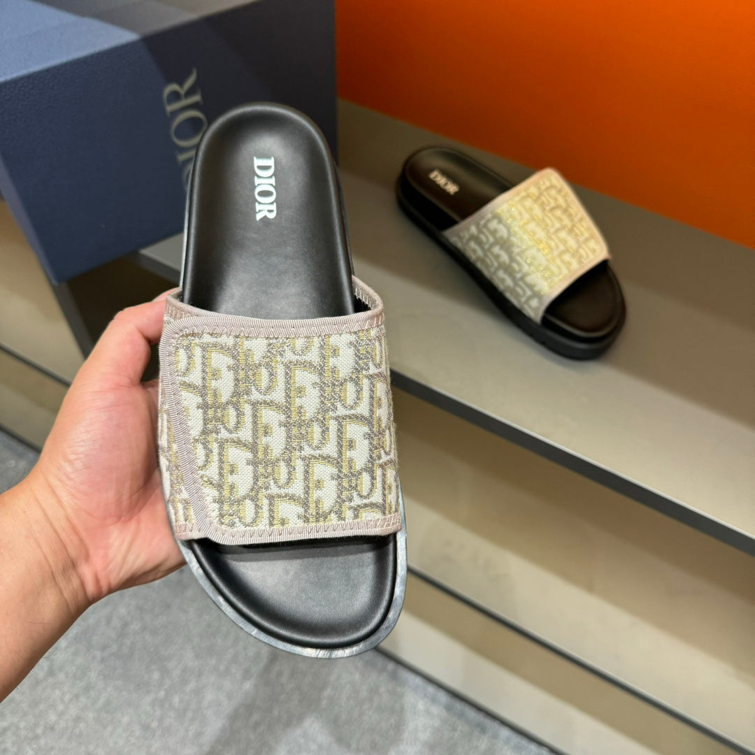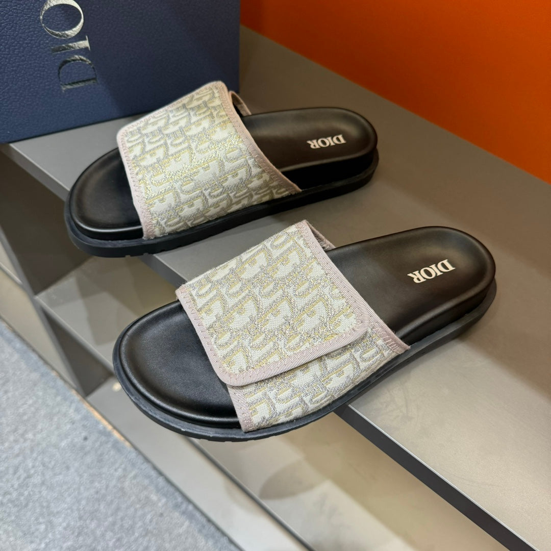 CD VELCRO STRAP SLIPPER PASTEL PINK AND BEIGE JACQUARD