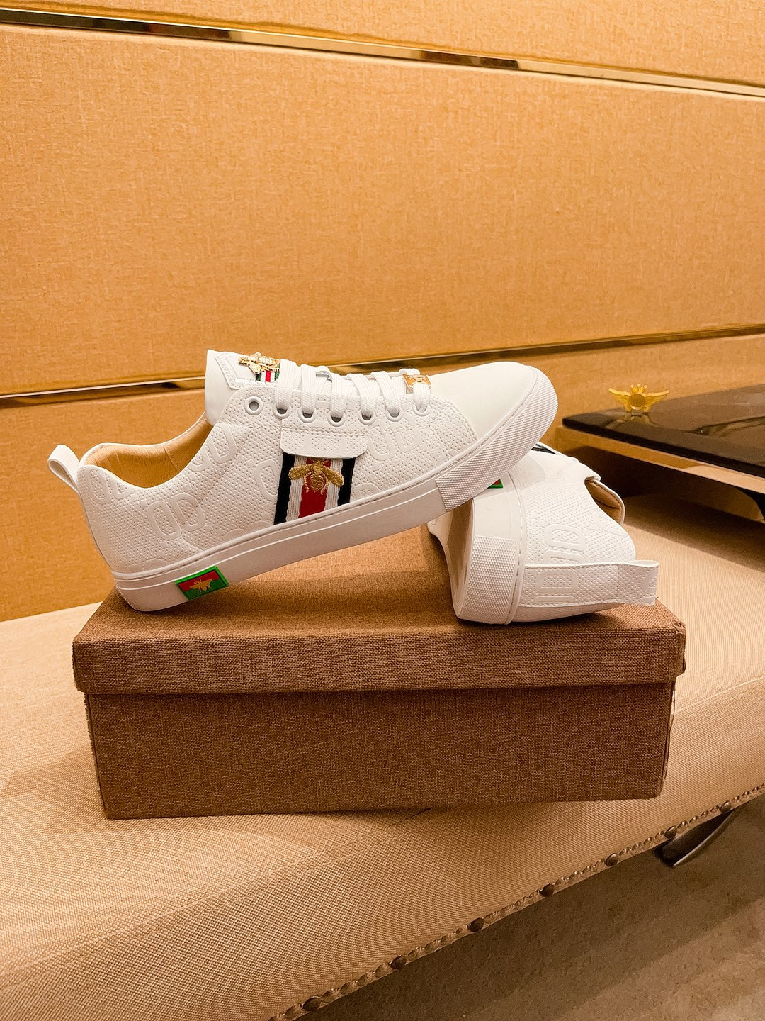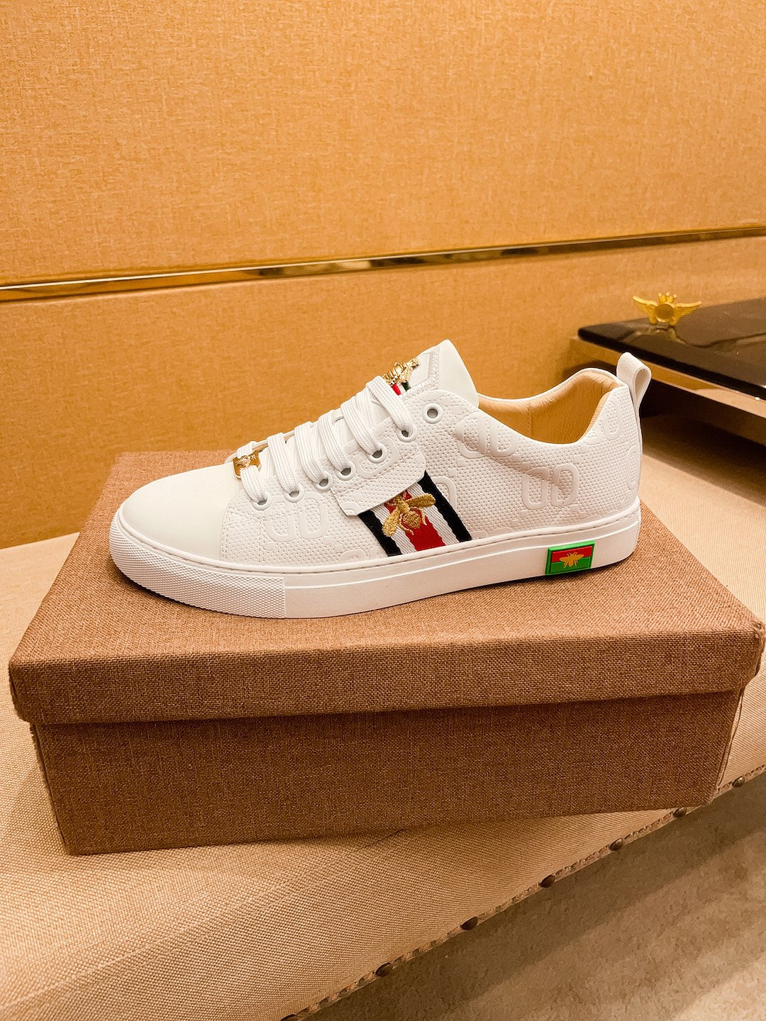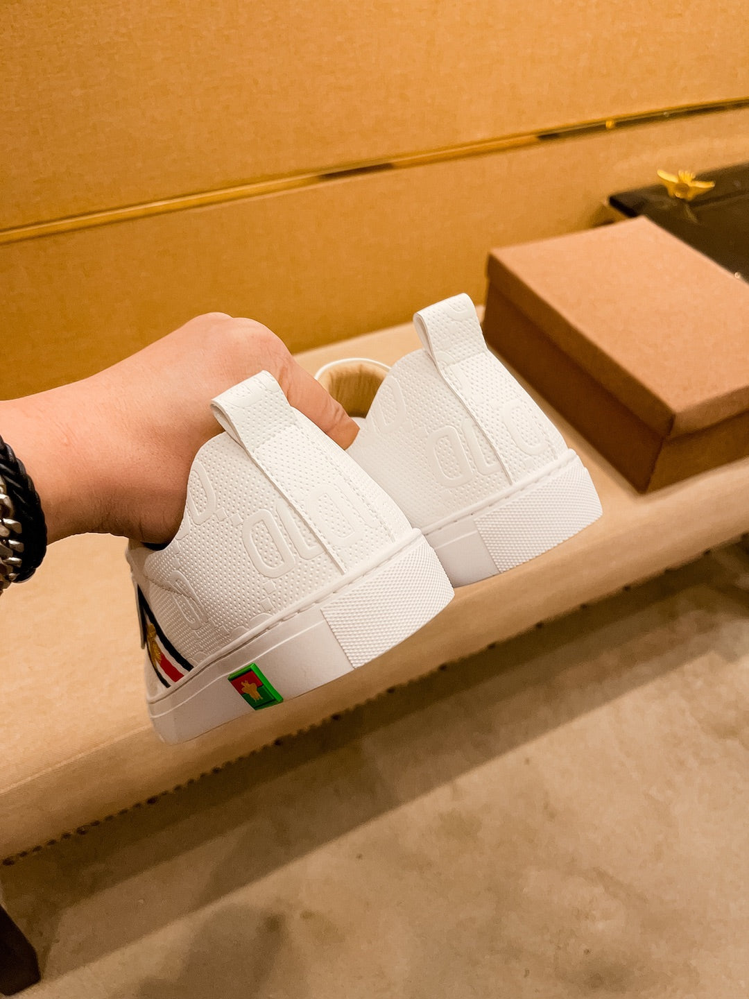 GG ACE EMBROIDERED BEE WHITE LEATHER