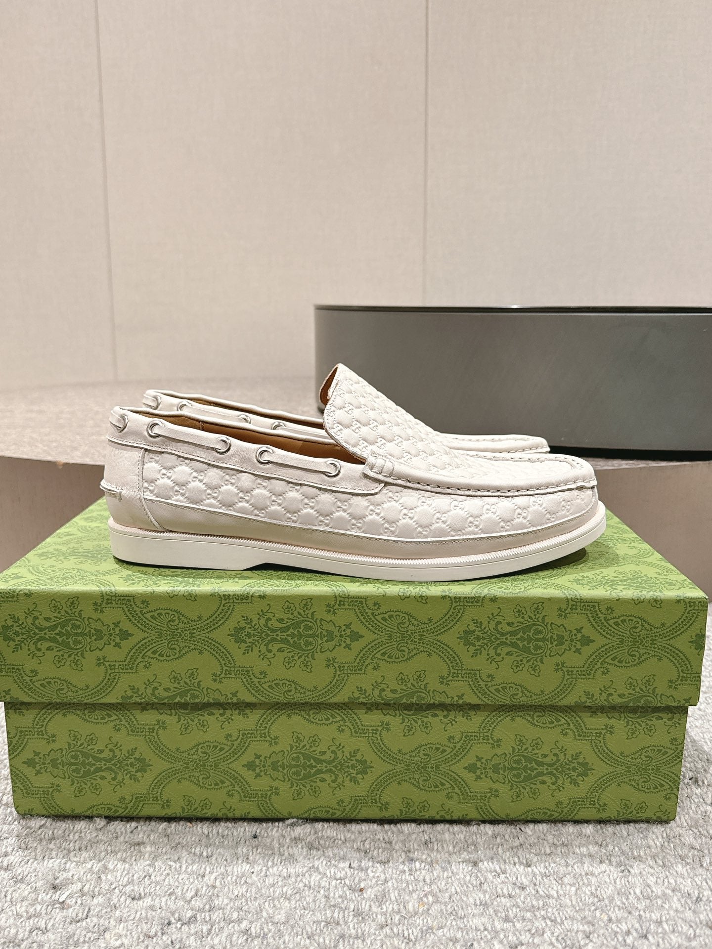 GG Men's 25 Loafer White Calfskin 592174