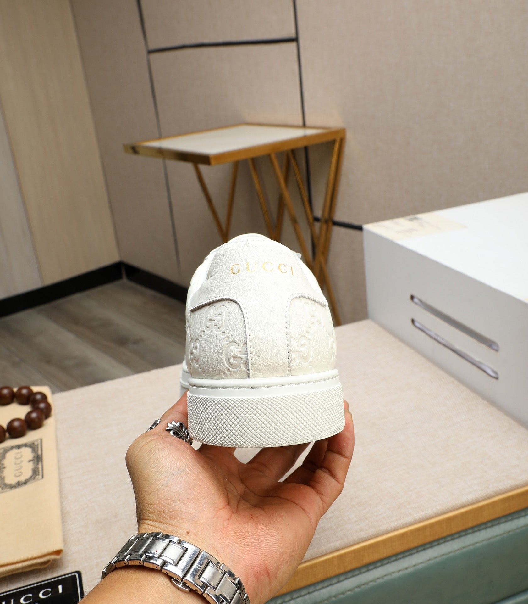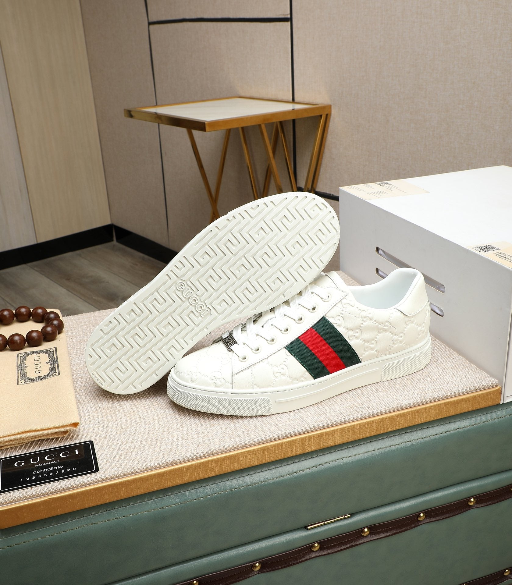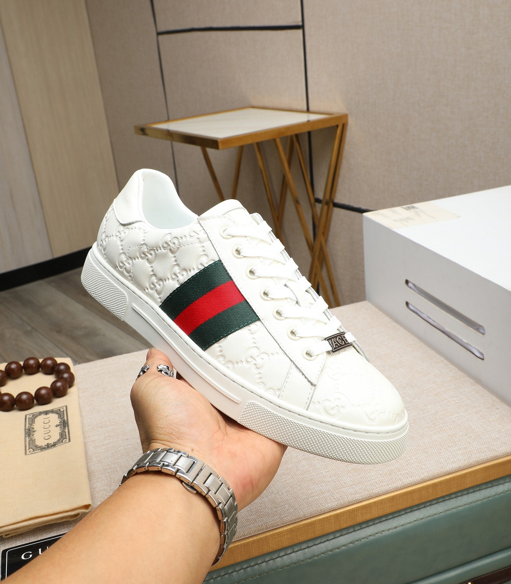 GG Men's ACE Sneaker White Embossed Calfskin 516600