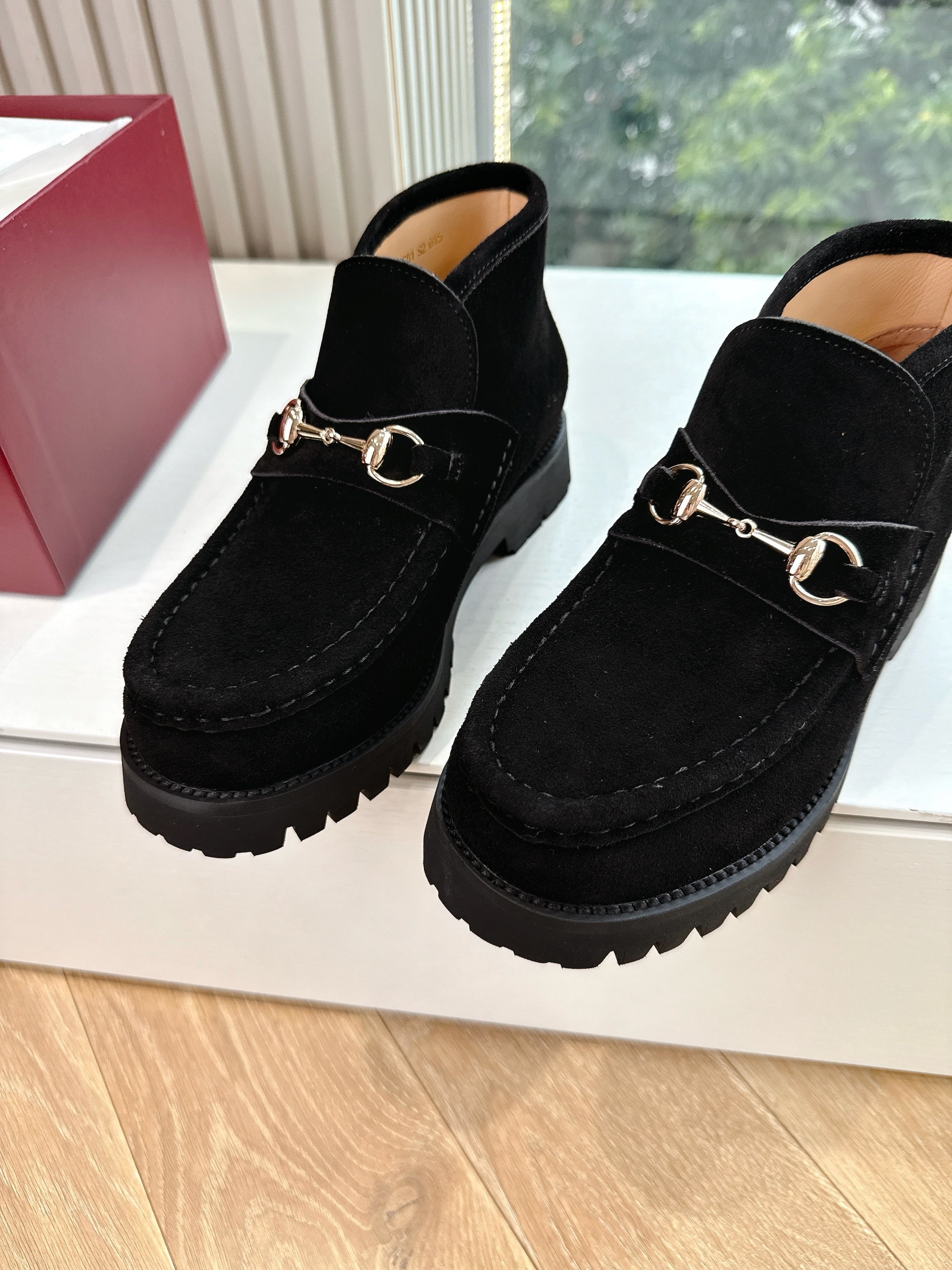 GG Men's Ankle Boot With Horsebit Variation Black Suede 506835