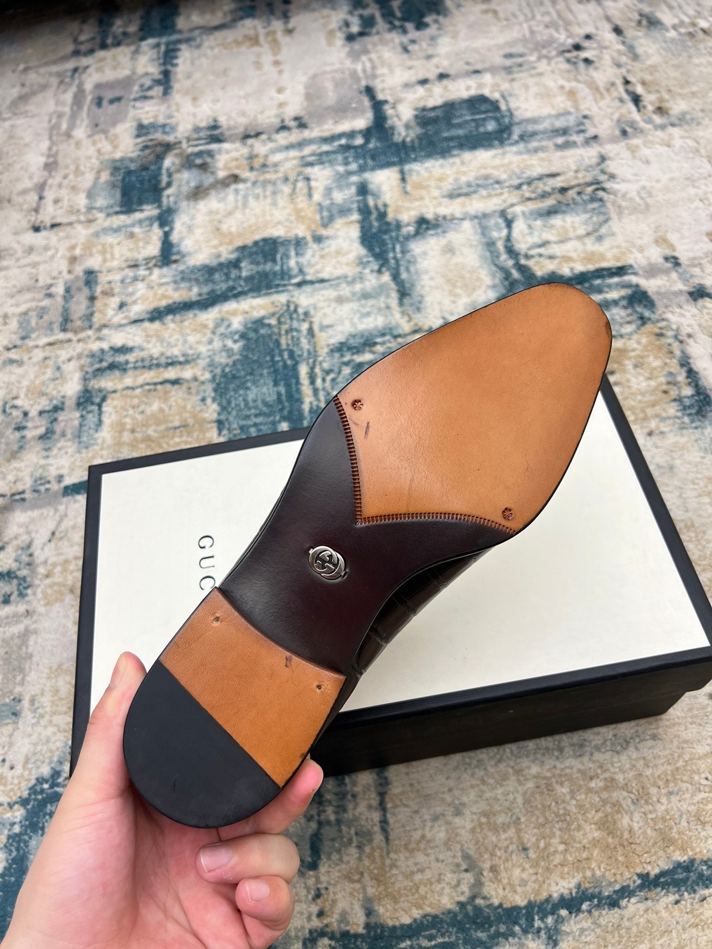 GG Men's Dress Shoe Dark Green Crocodile Embossed Calfskin 533109
