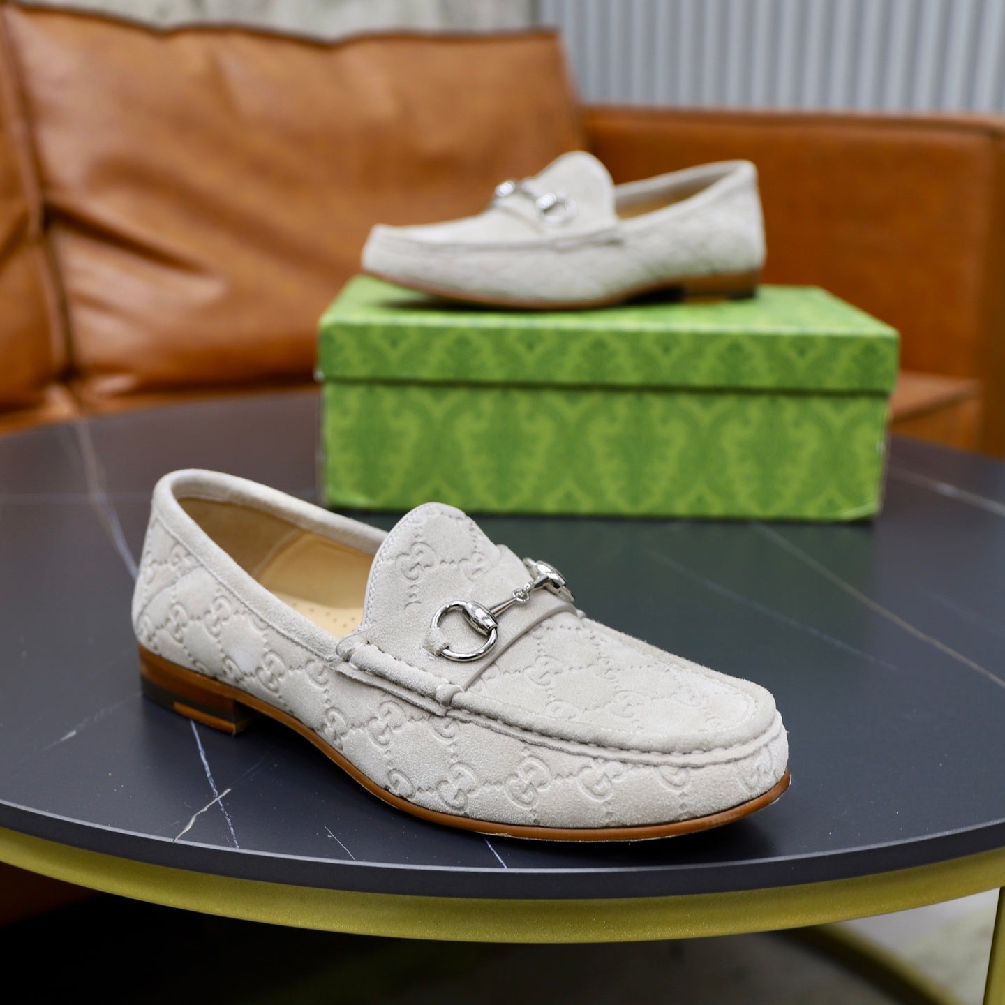 GG Men's Horsebit Loafer Grey Suede 600388