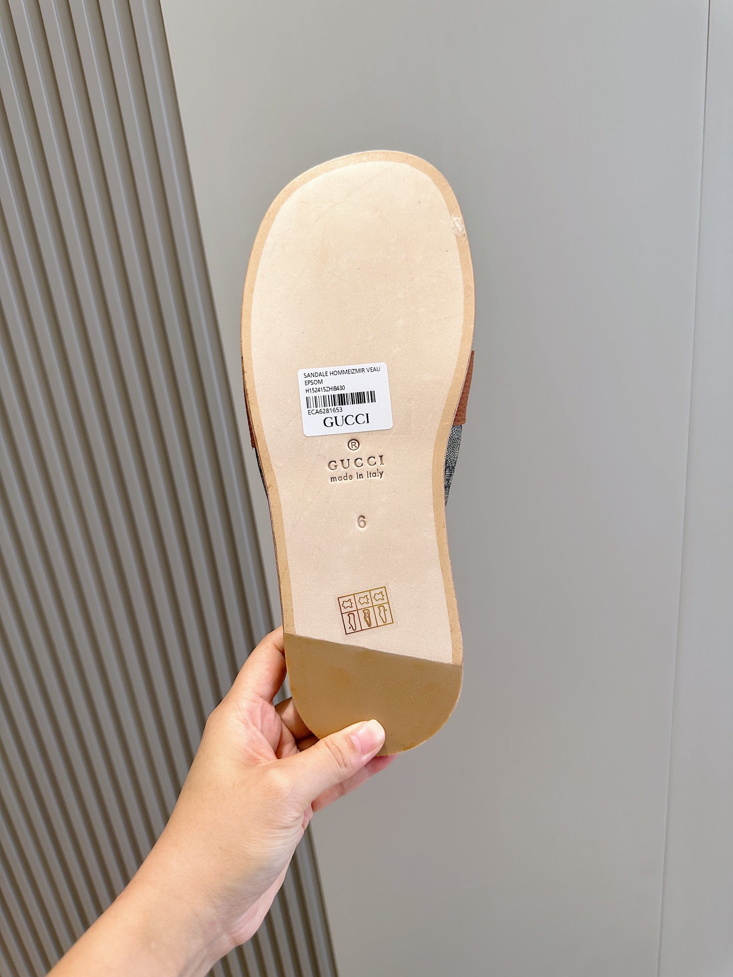 GG Men's Interlocking G Slides Brown Cowhide 547640