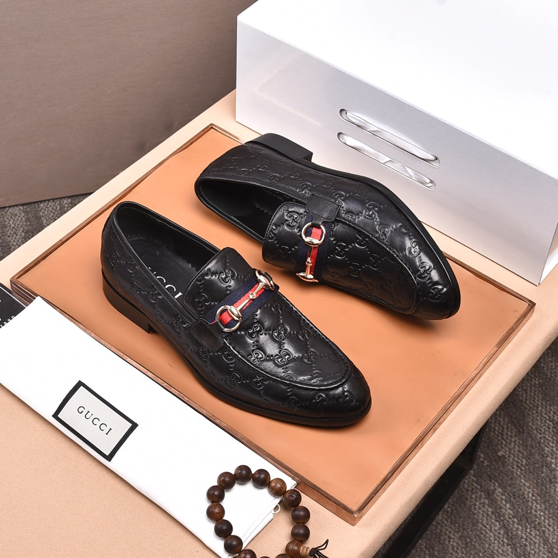 GG Men's Loafer Black Embossed Cowhide 538715