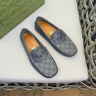GG Men's Loafer Grey Canvas Cowhide 537557