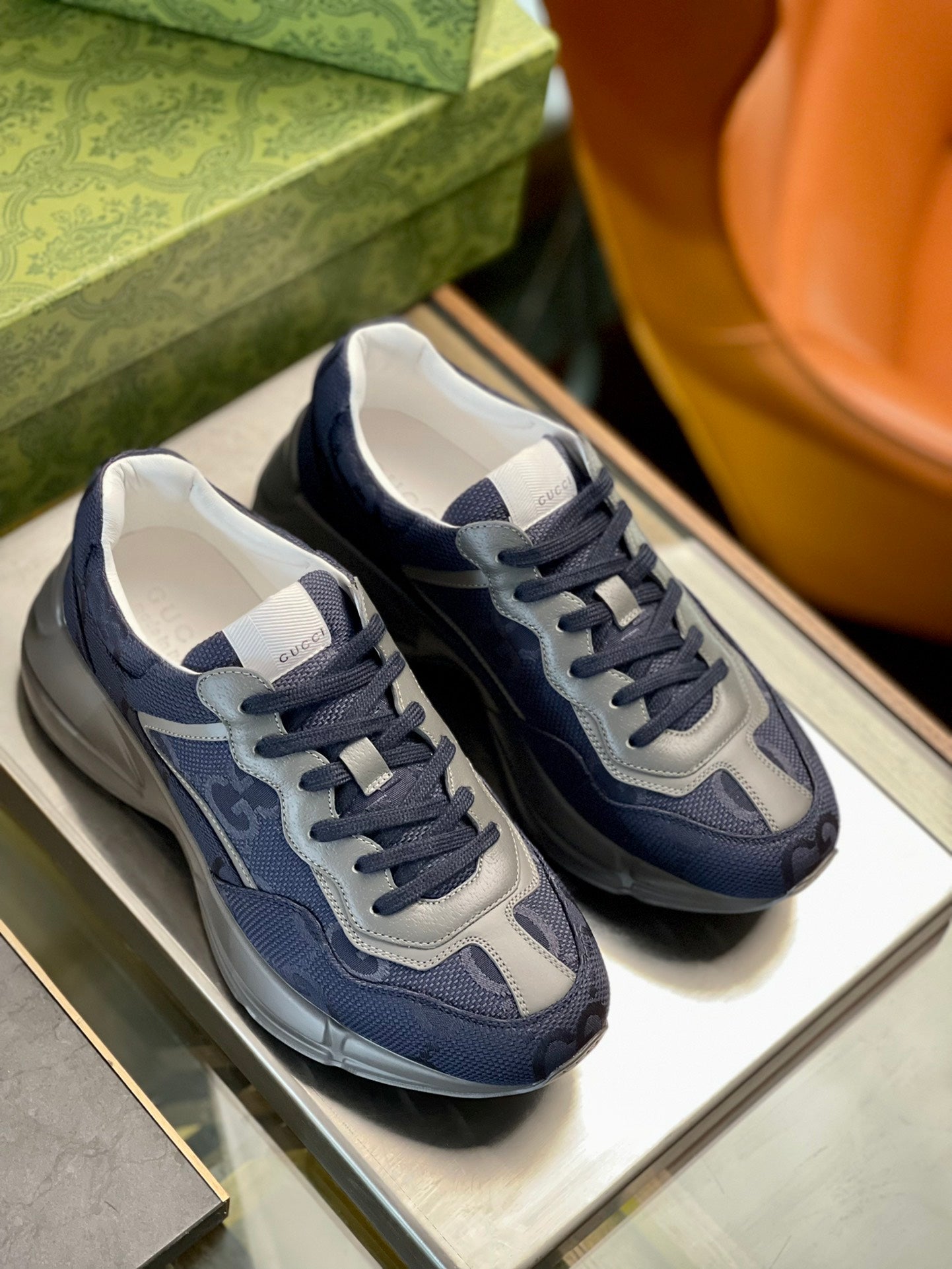 GG Men's Rhyton Sneaker Technical Knit Cowhide 524507