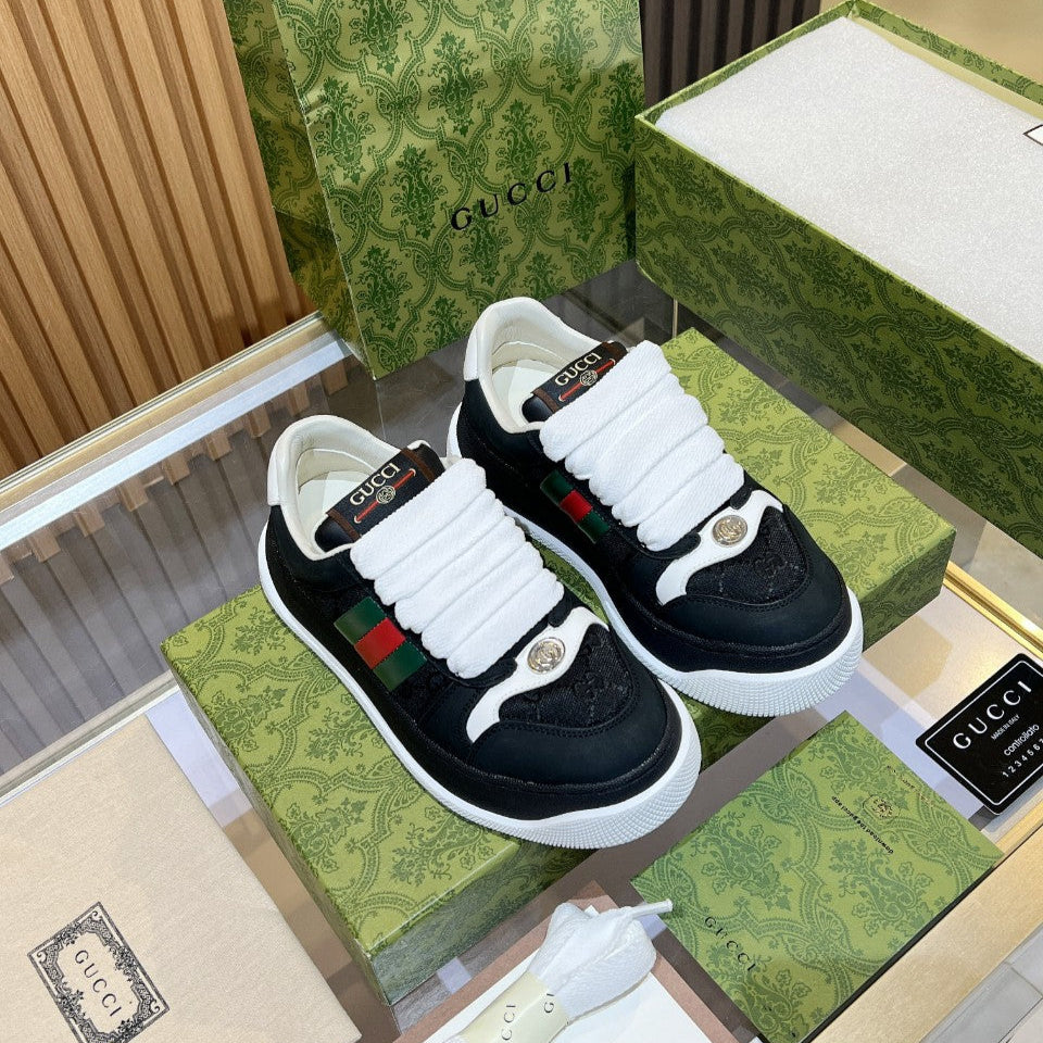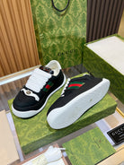 GG Men's Screener Sneaker Black Canvas Sheepskin 523608