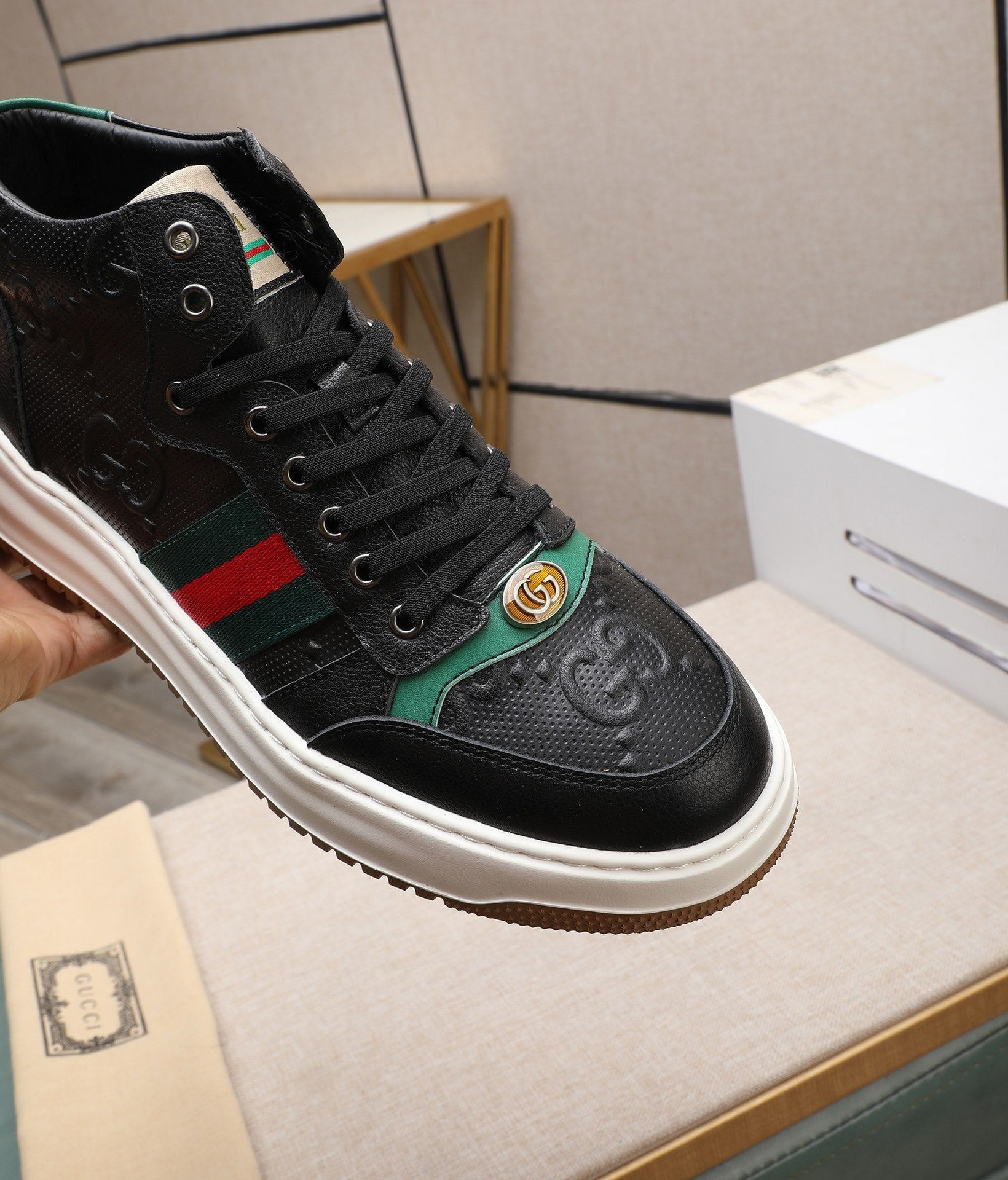 GG Men's Screener Sneaker Black Cowhide 440160