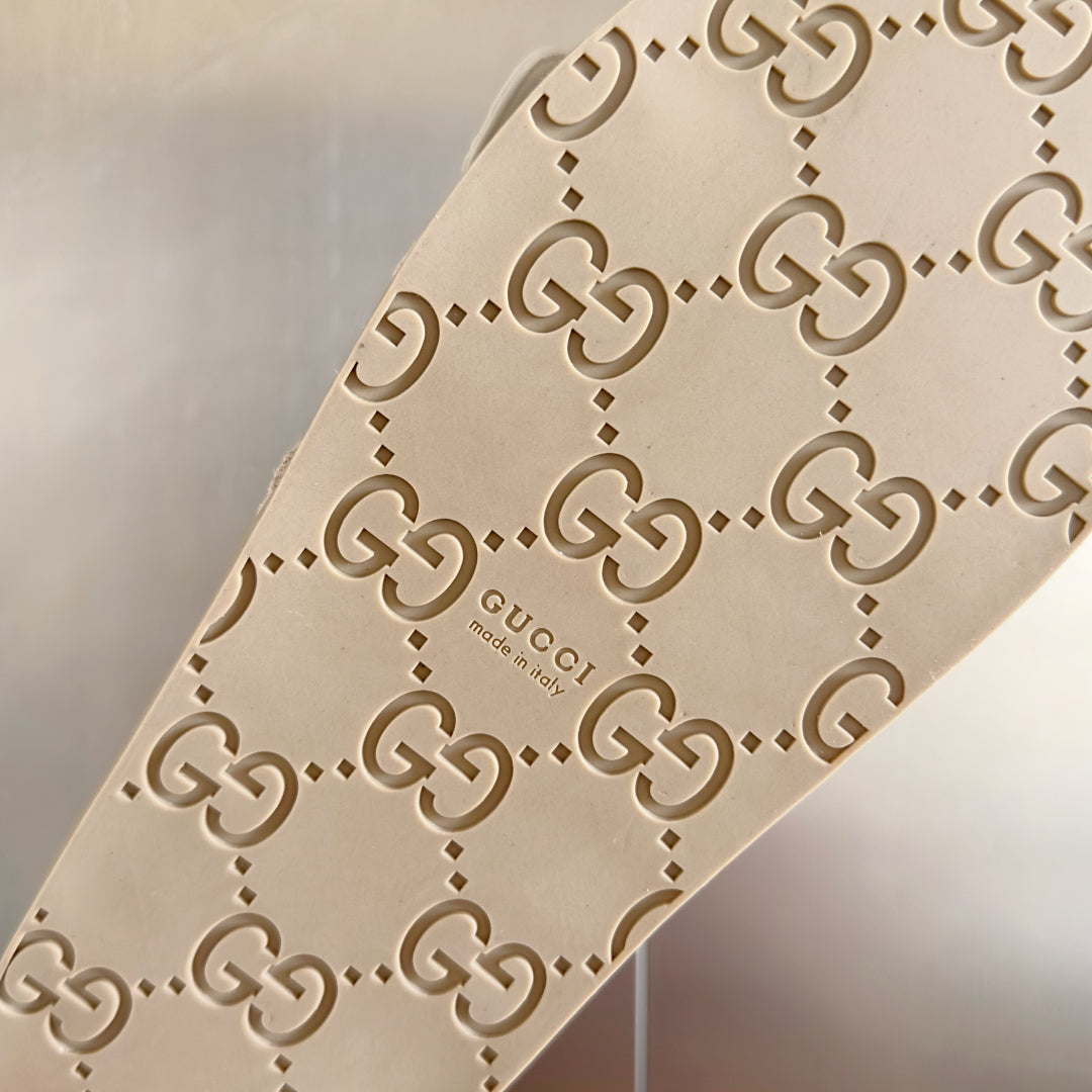 GG Men's Slide White Embossed Suede 595717