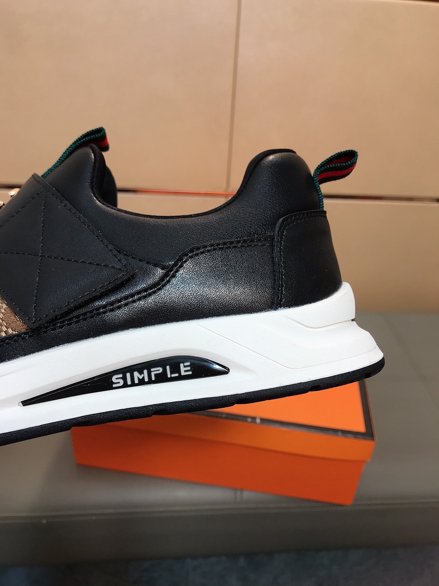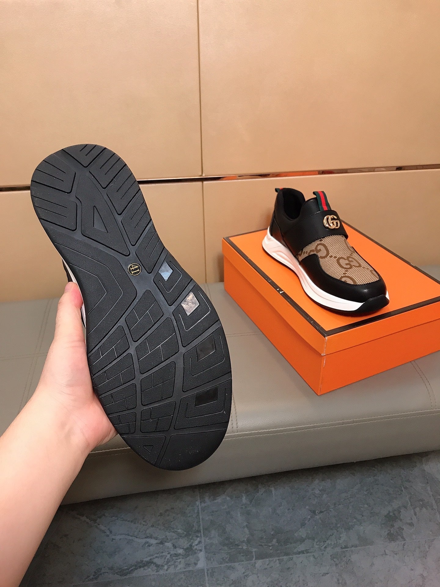 GG Men's Slip on Black Brown Cowhide Canvas 530402
