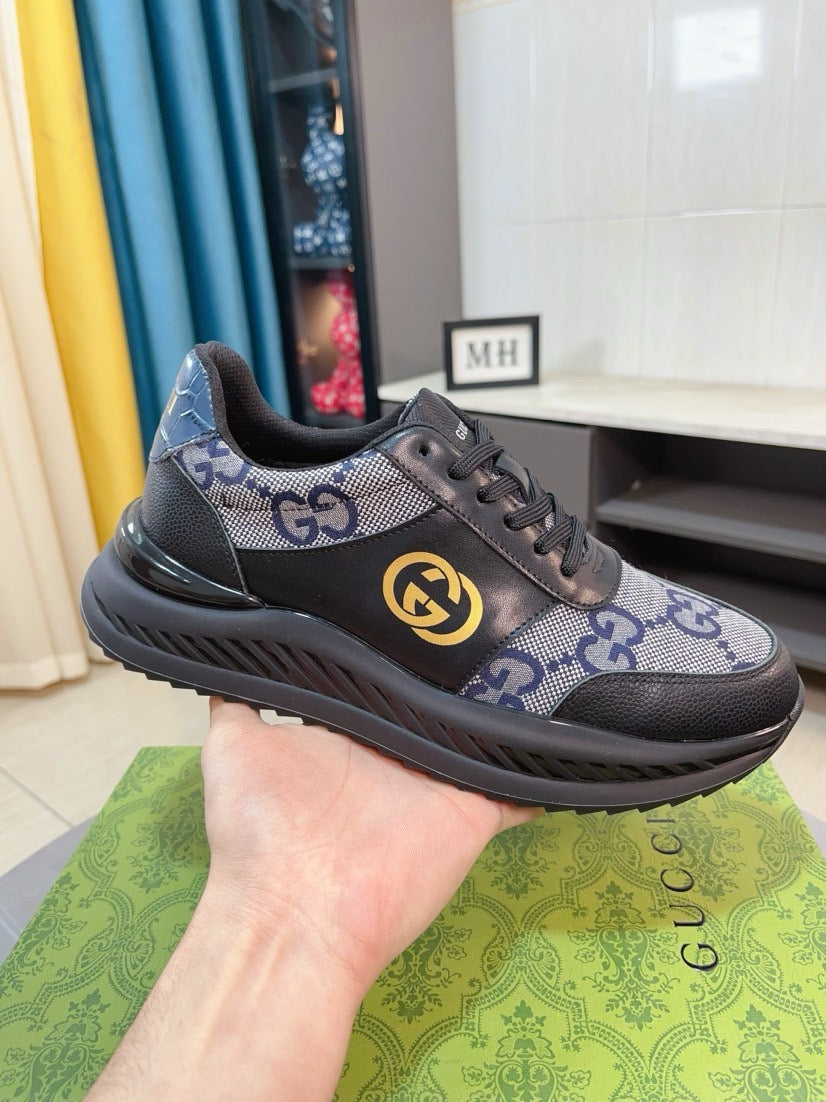 GG Men's Sneaker Black Blue Canvas Calfskin 523336
