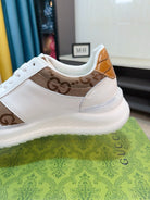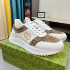 GG Men's Sneaker Brown White Canvas Calfskin 523337