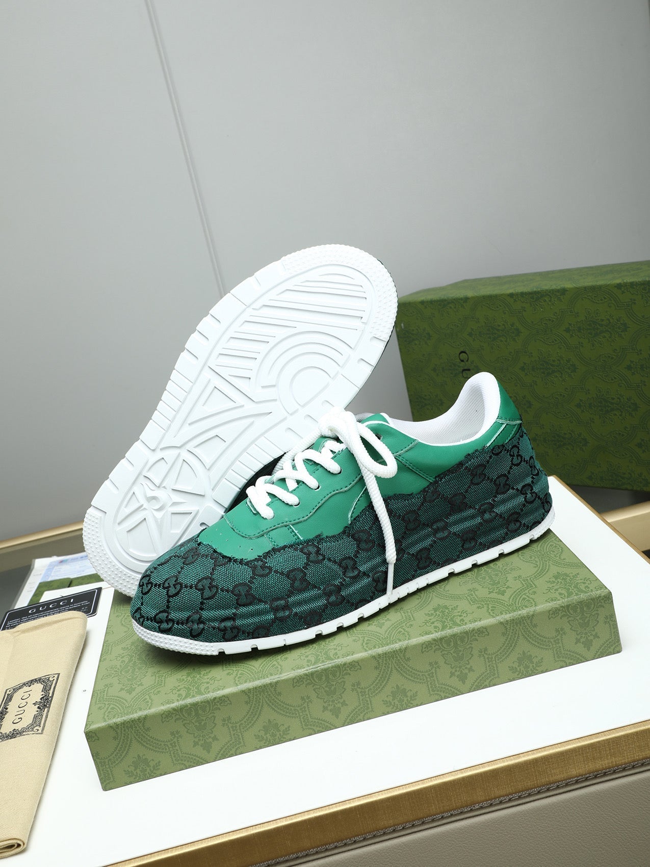 GG Men's Sneaker Green Cowhide 587319
