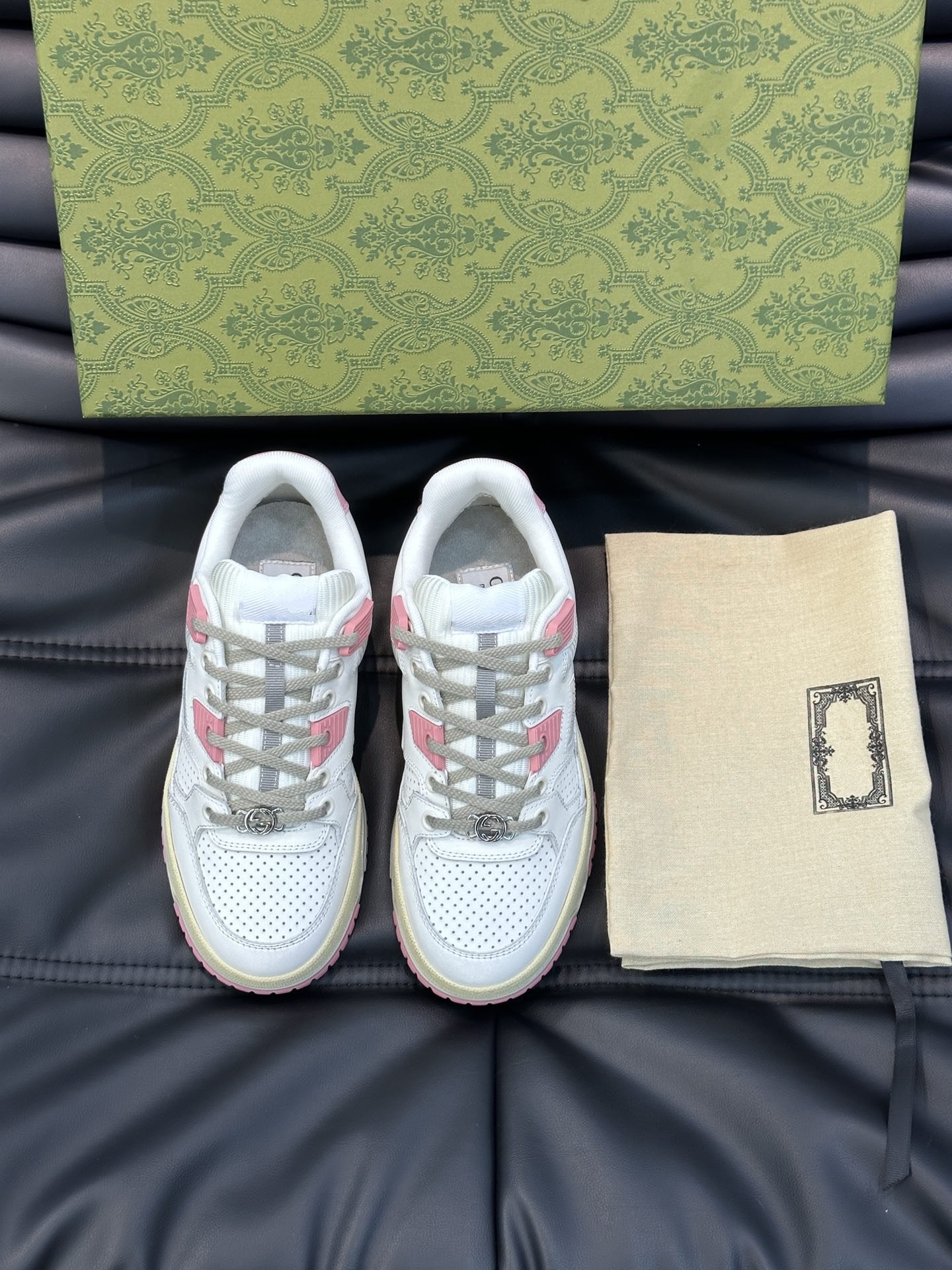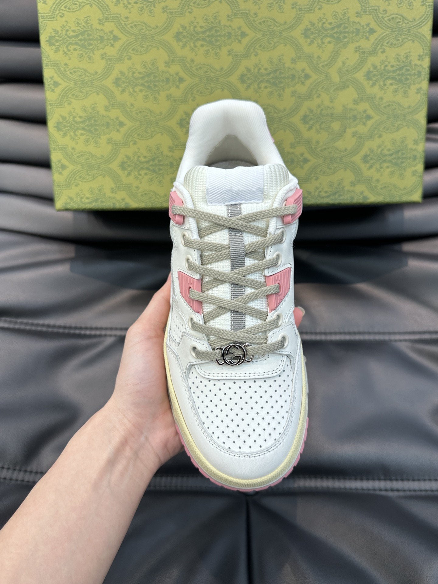 • Upper: The skillful integration of brand logo details such as the Double G accessory and the interlocking G letters is a subtle nod to the brand's design heritage.