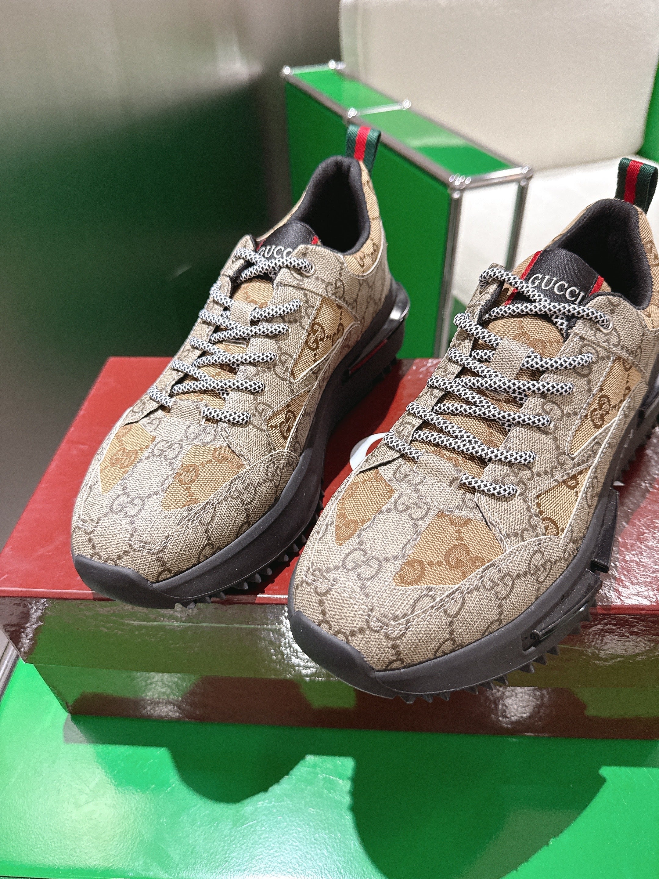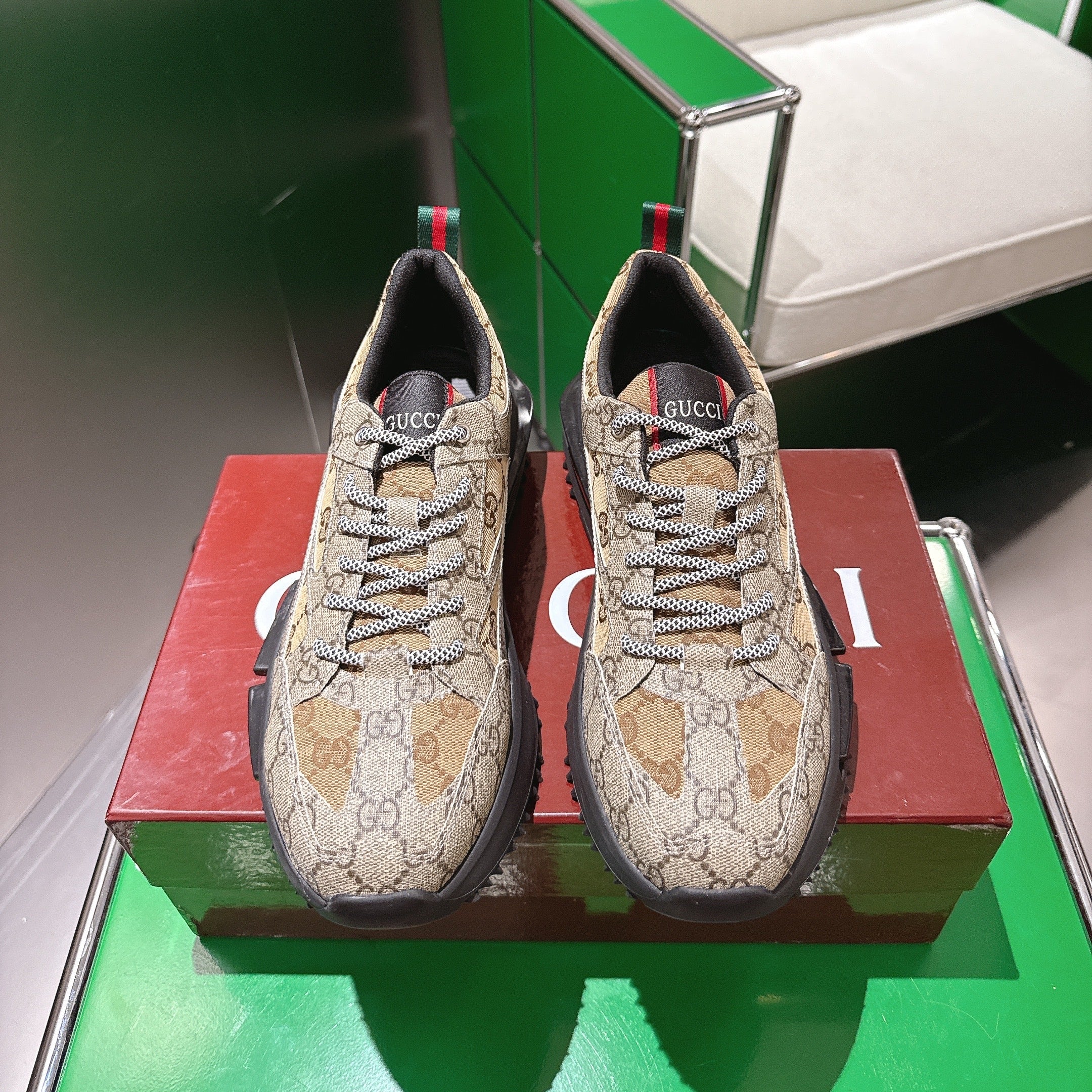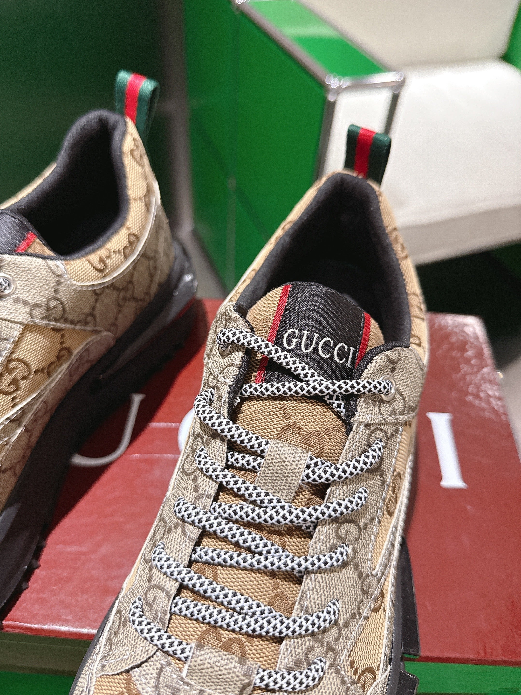 Gucci Rhyton Sneakers Dank Beige and Camel Supreme Canvas 507552
