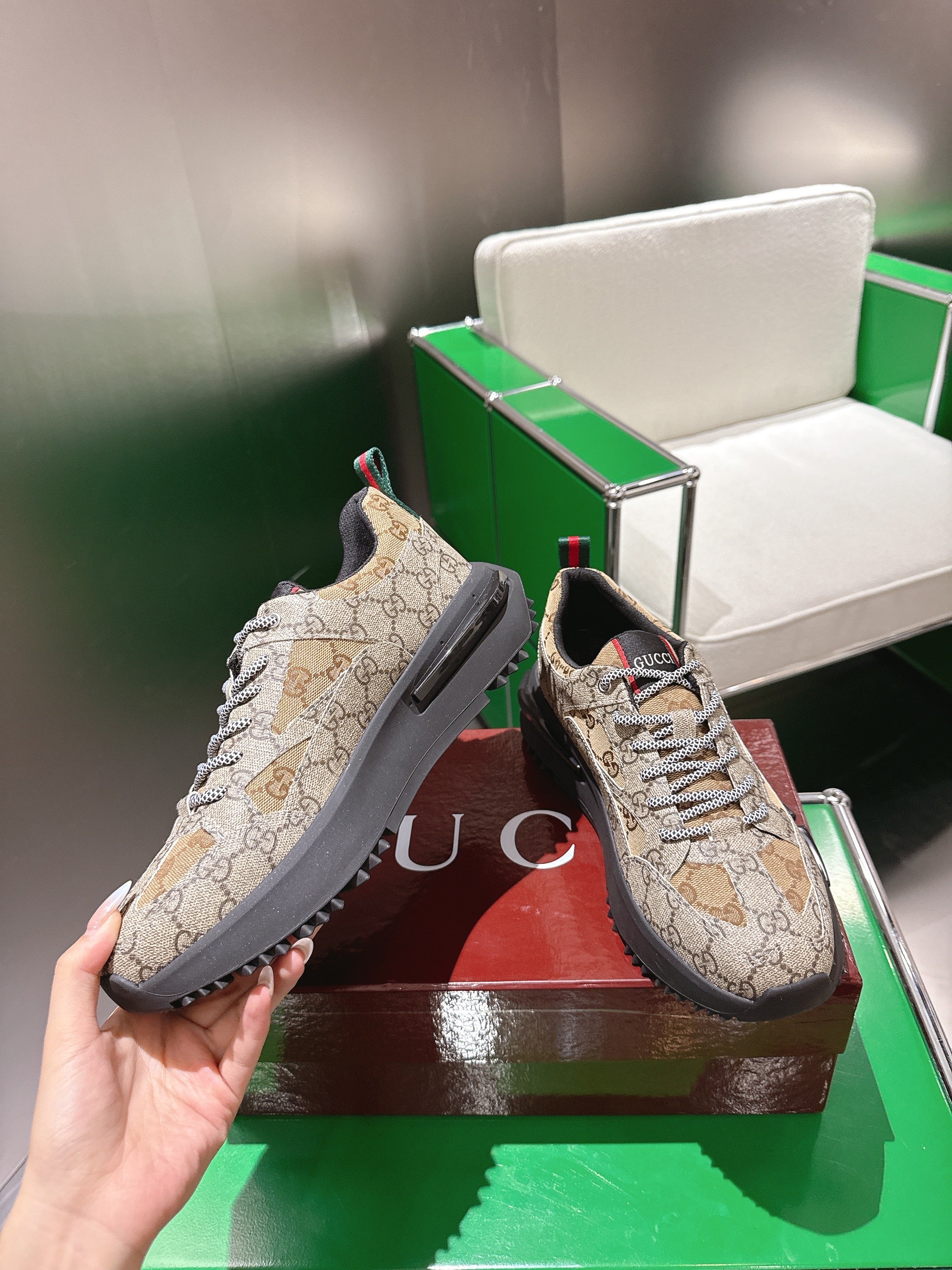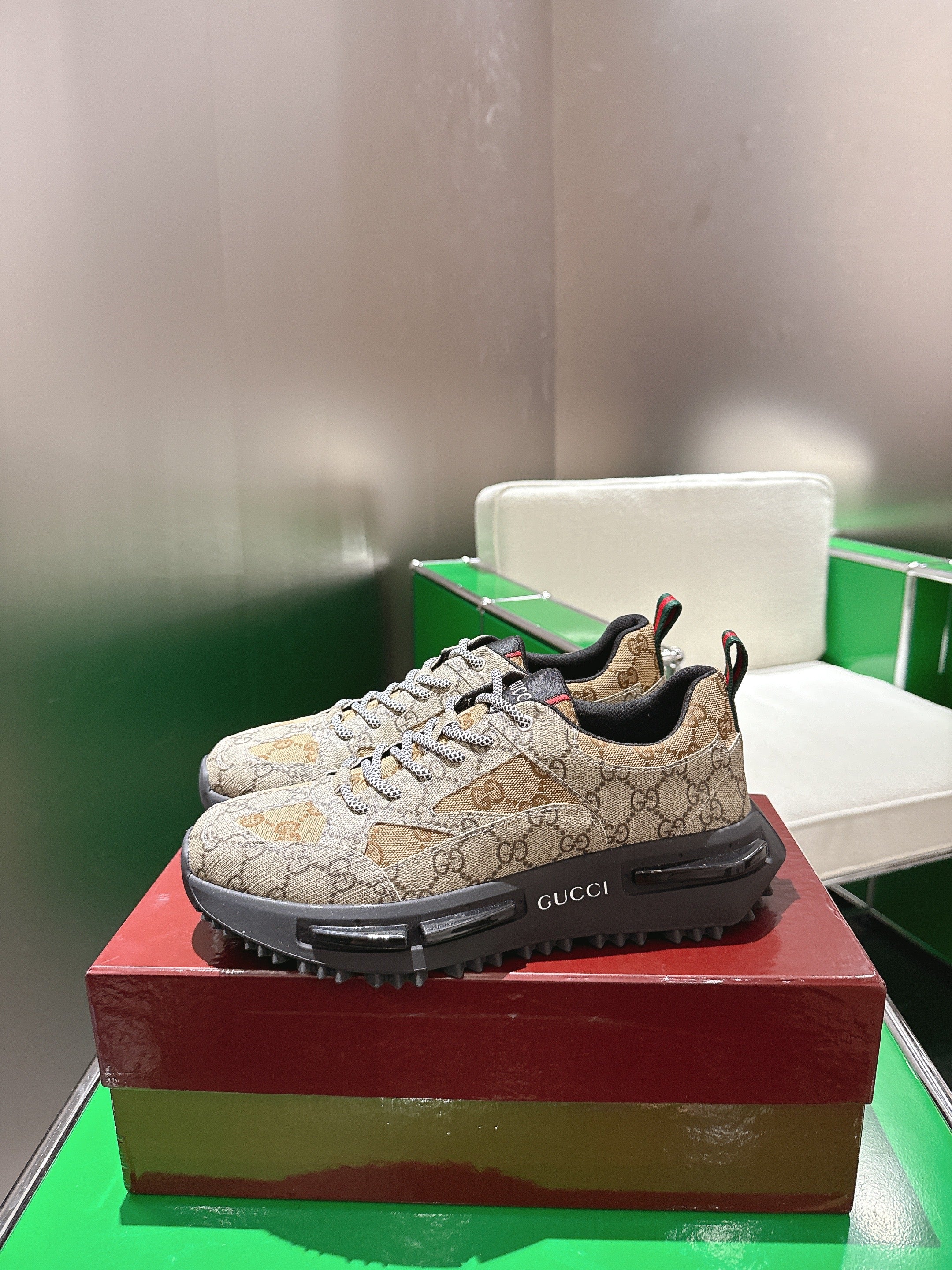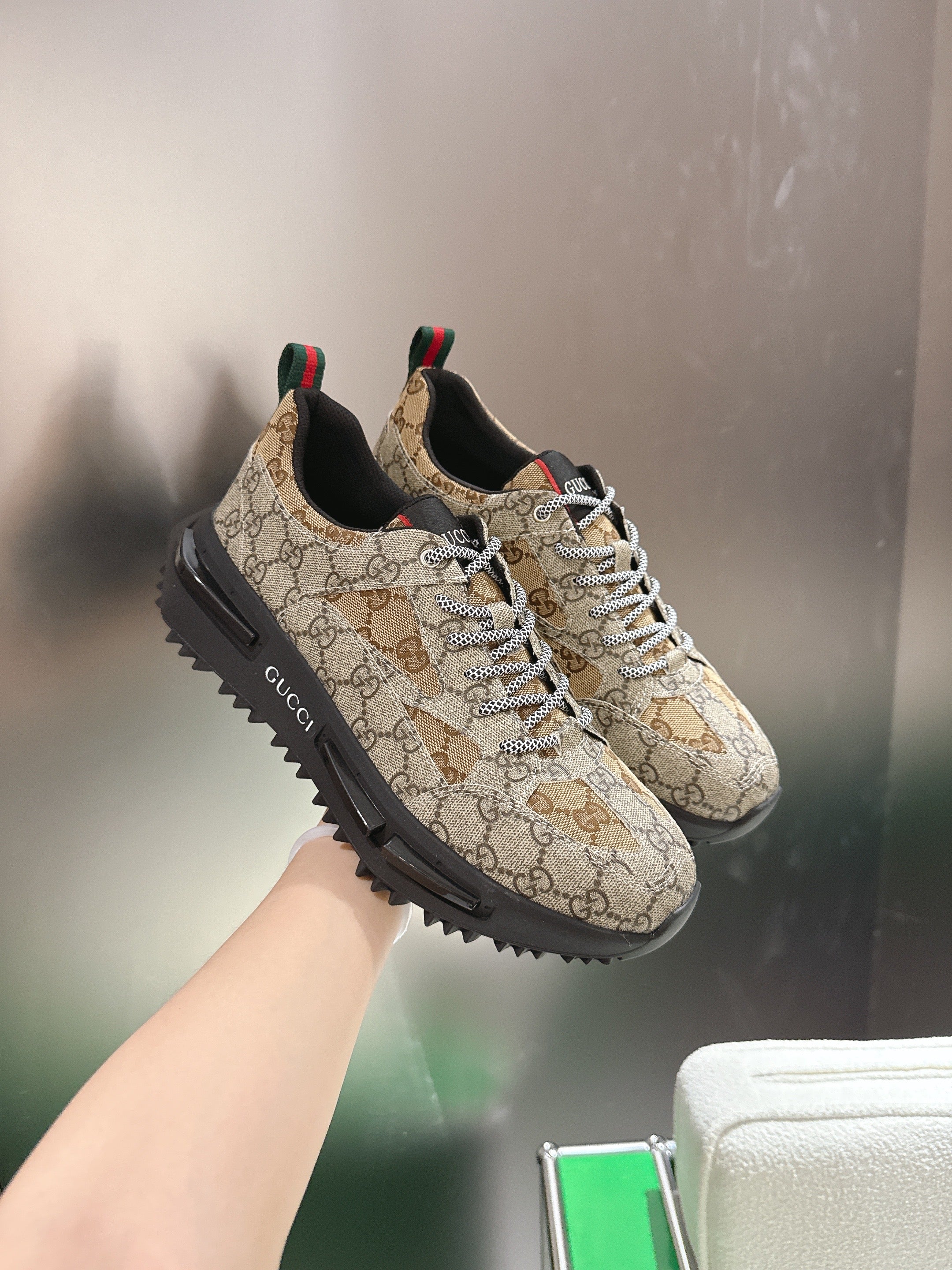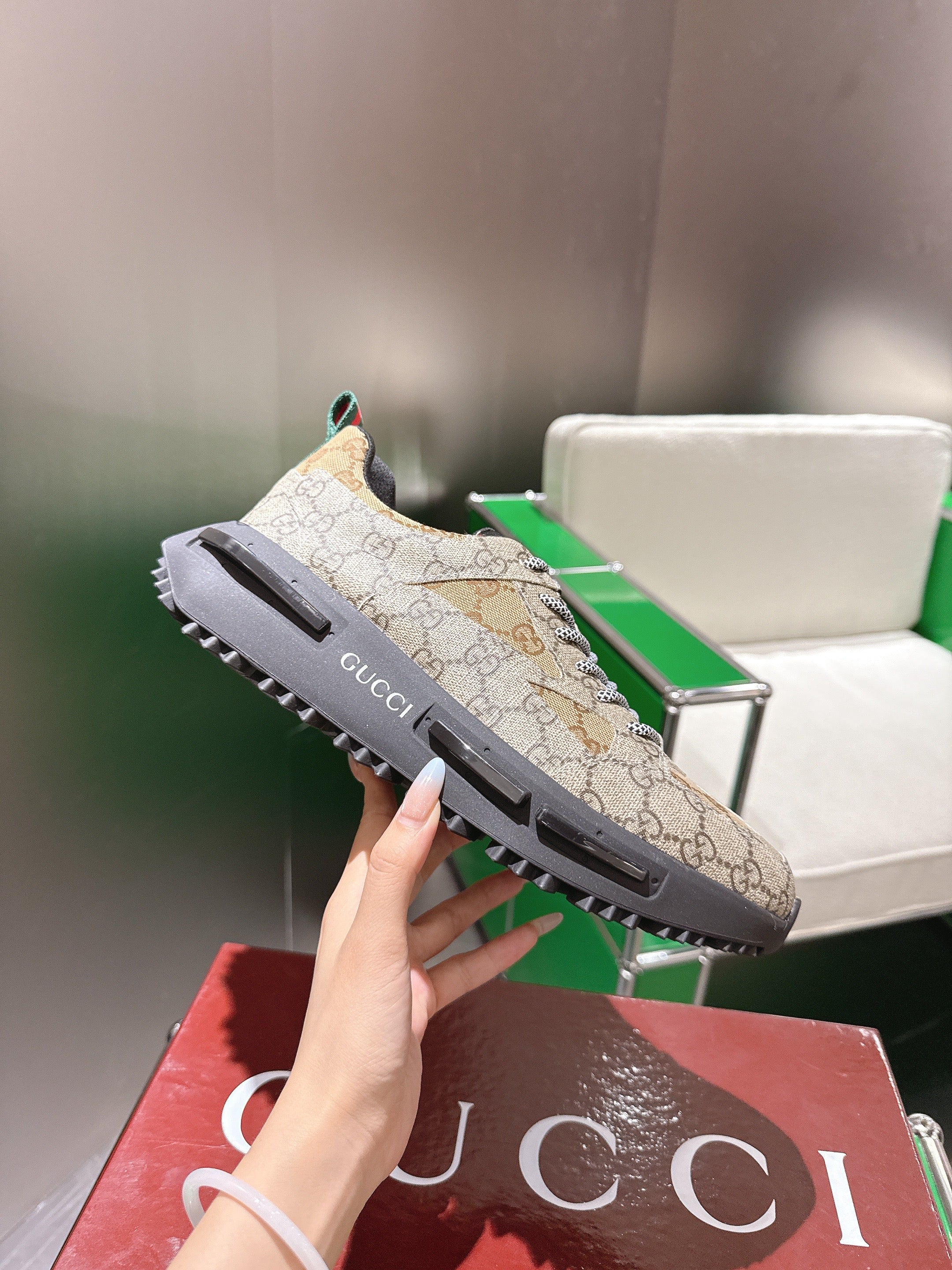 Gucci Rhyton Sneakers Dank Beige and Camel Supreme Canvas 507552