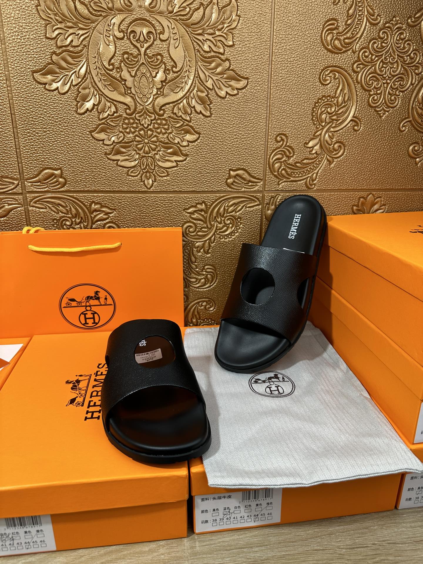 HM CIRCLE CUT SANDAL BLACK CALFSKIN