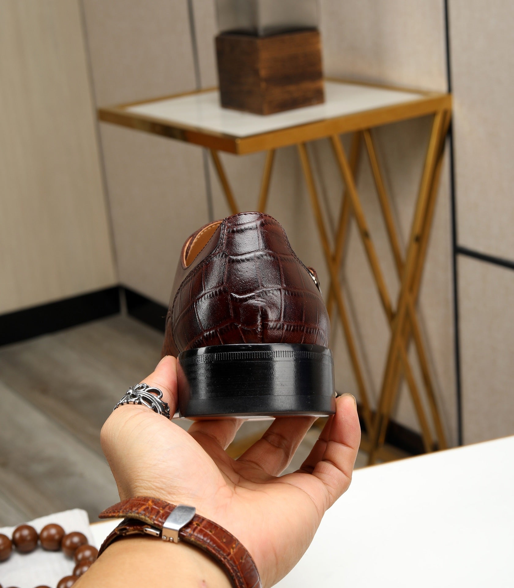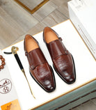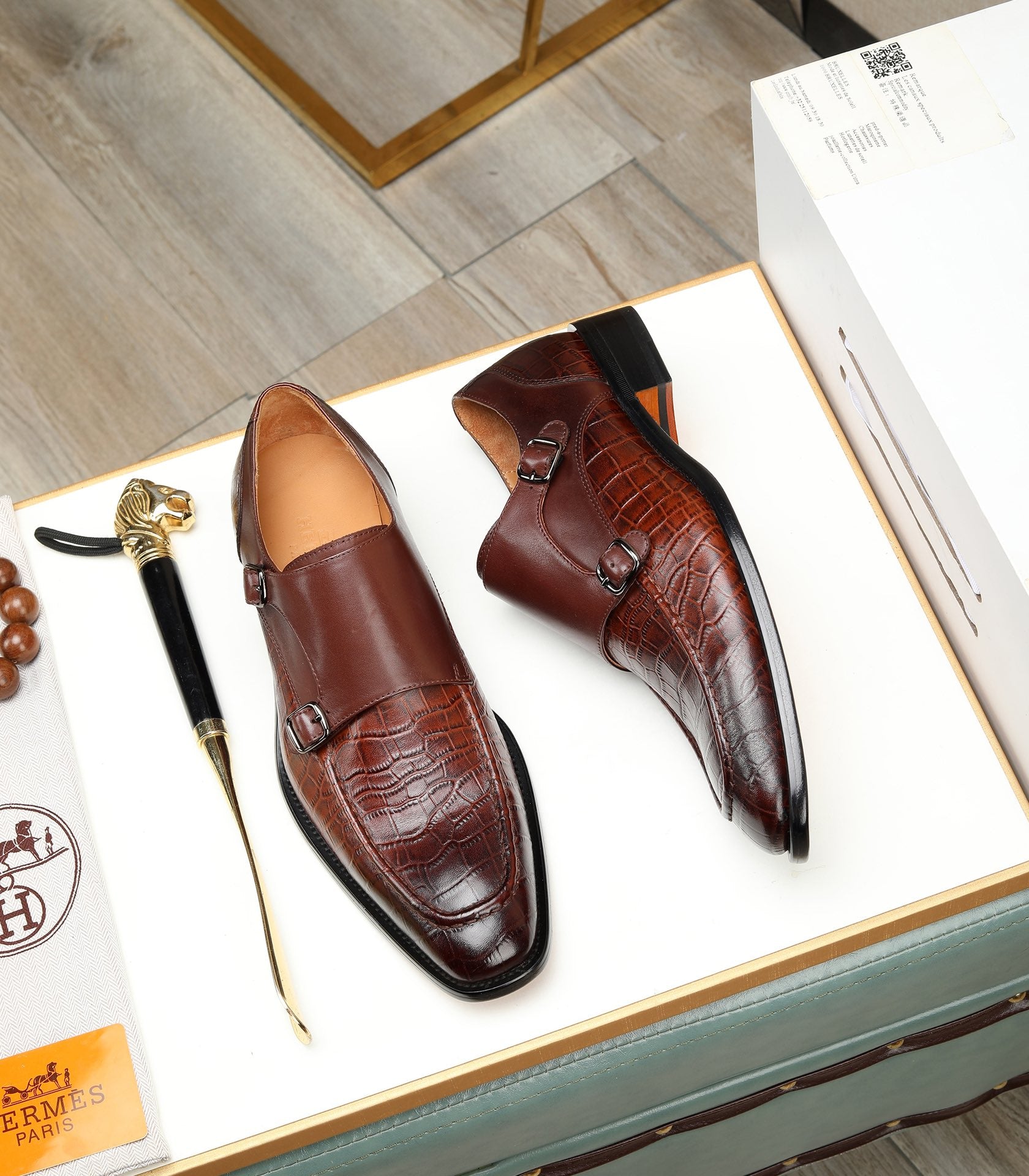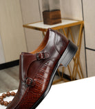 HM DOUBLE MONK STRAP RUSSET WITH CROCODILE MOTIF CALFSKIN