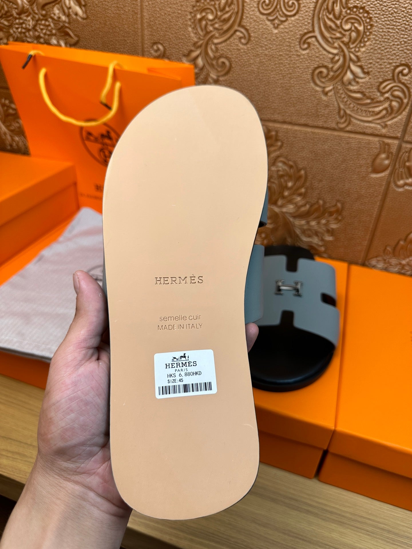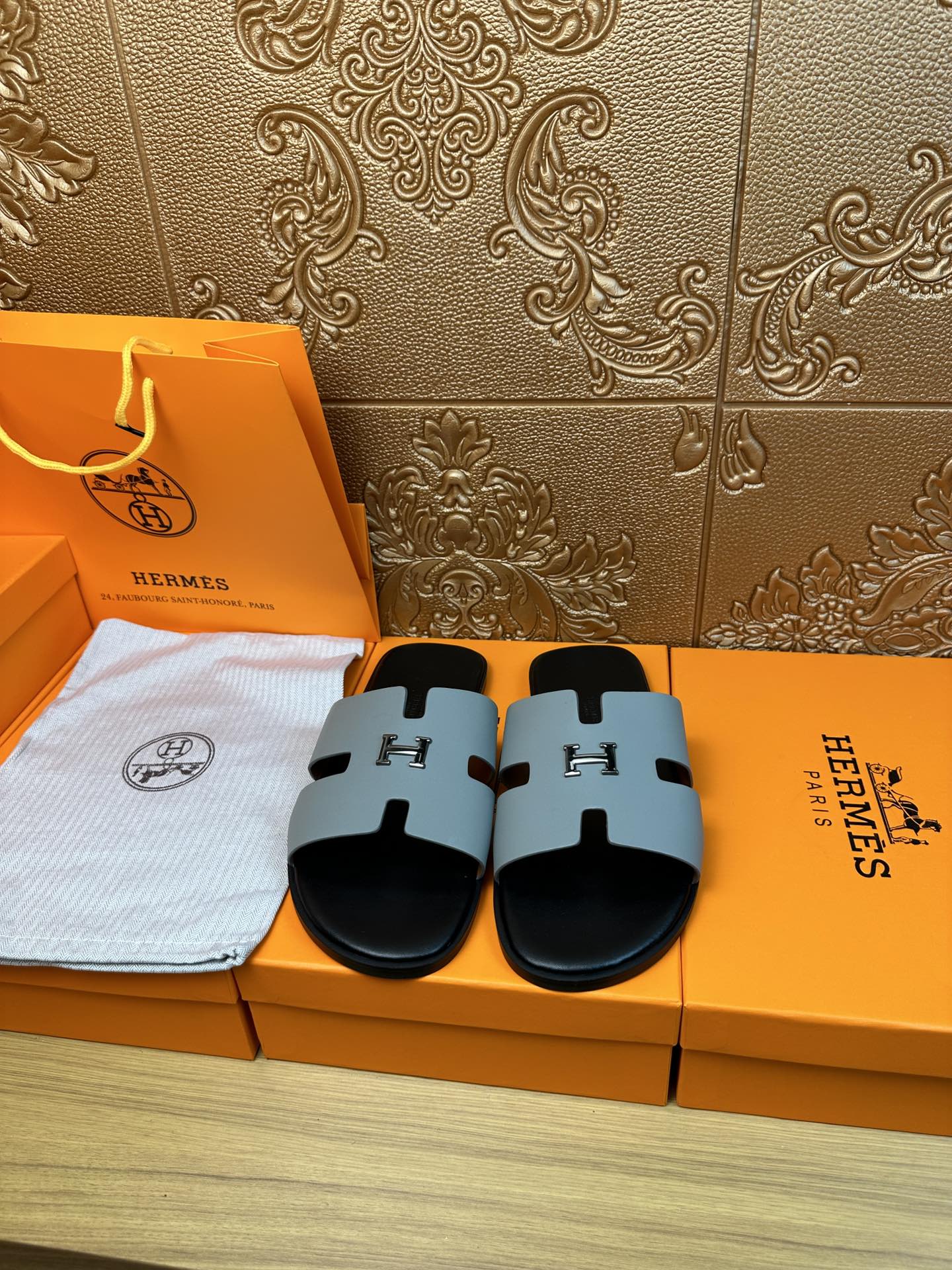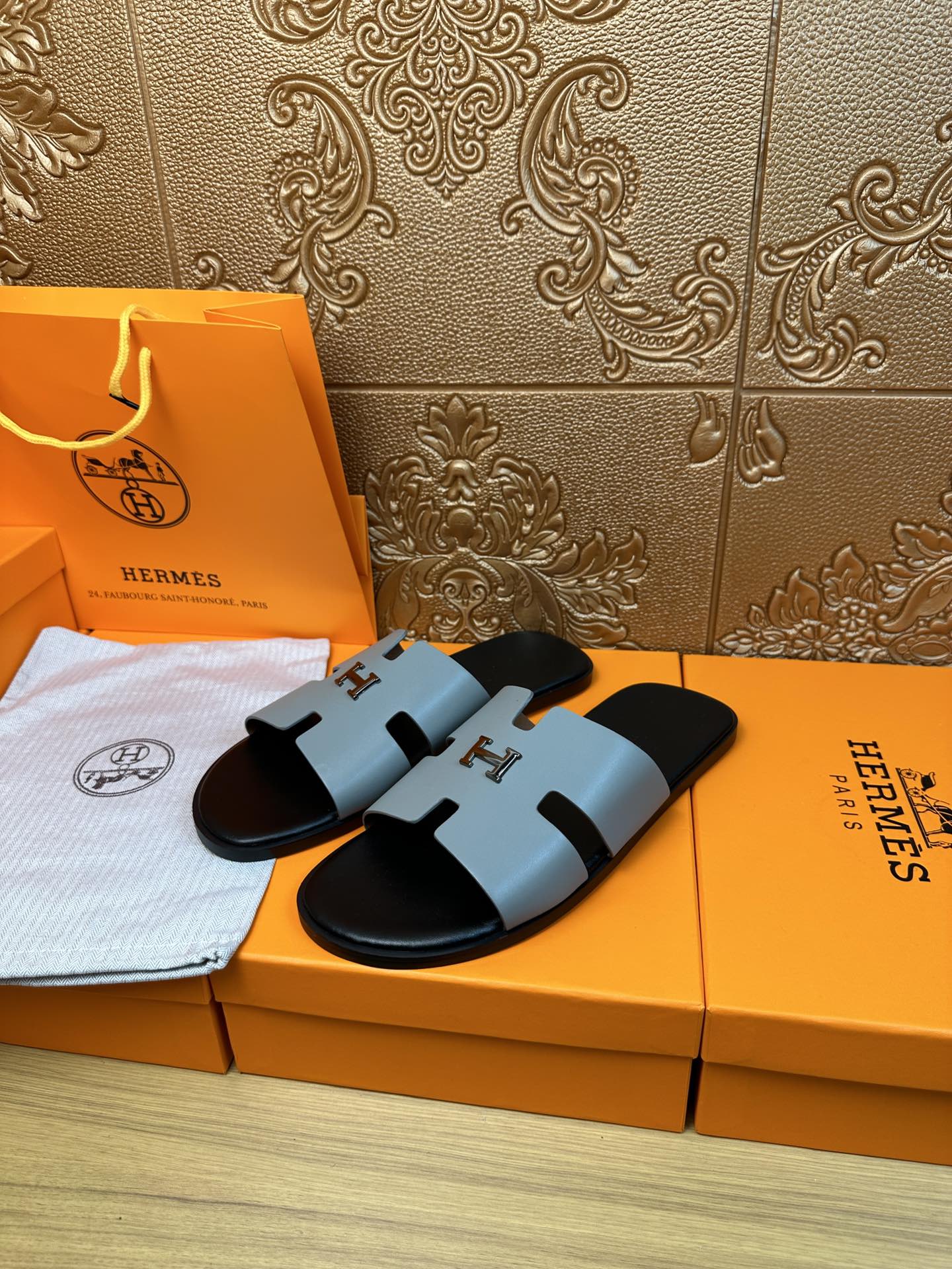 HM IZMIR H-BUCKLE SANDAL STONE CALFSKIN
