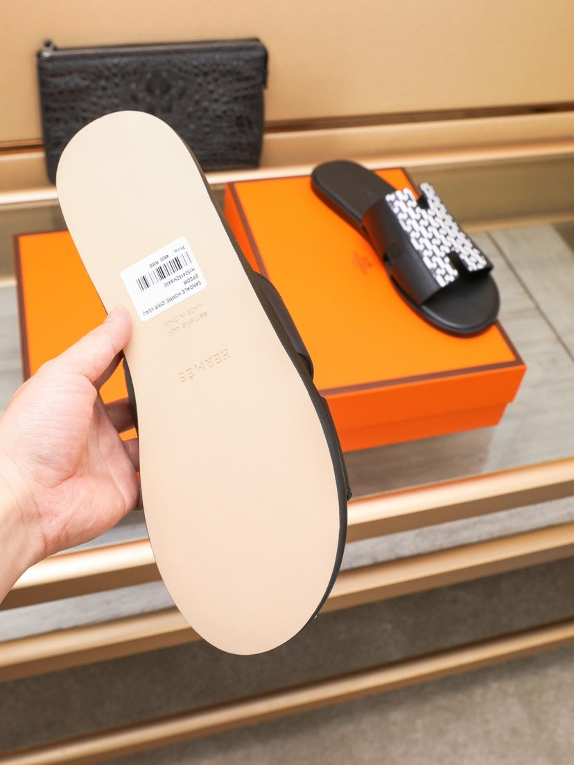 HM IZMIR SANDAL BLACK AND WHITE LAMBSKIN