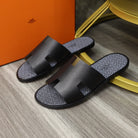 HM IZMIR SANDAL BLACK WITH WHITE MOTIF CALFSKIN
