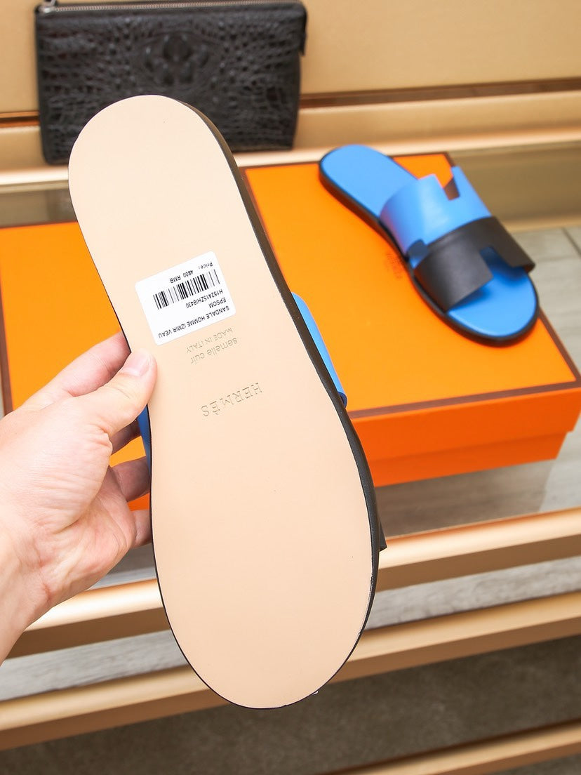 HM IZMIR SANDAL COBALT AND BLACK LAMBSKIN