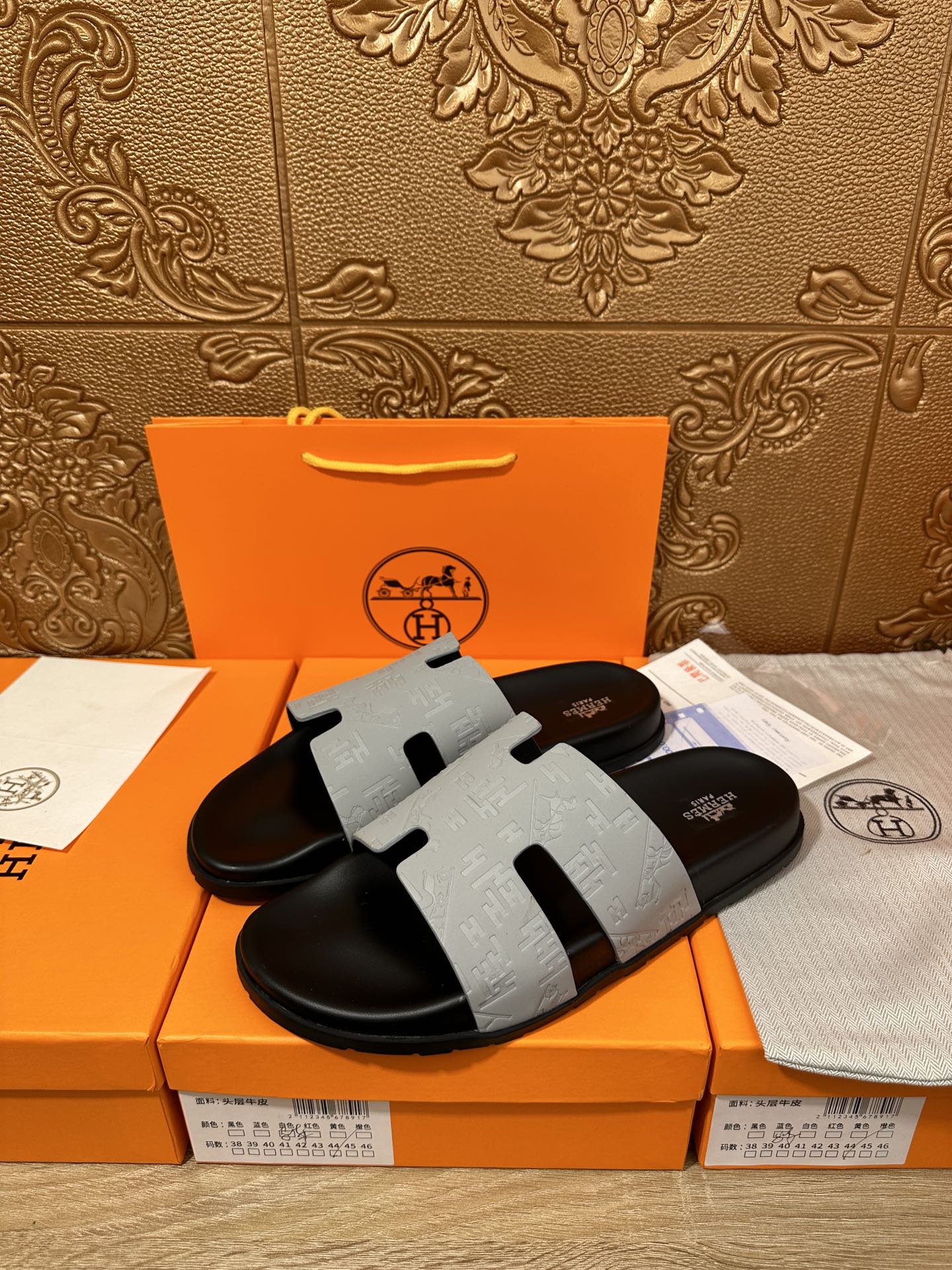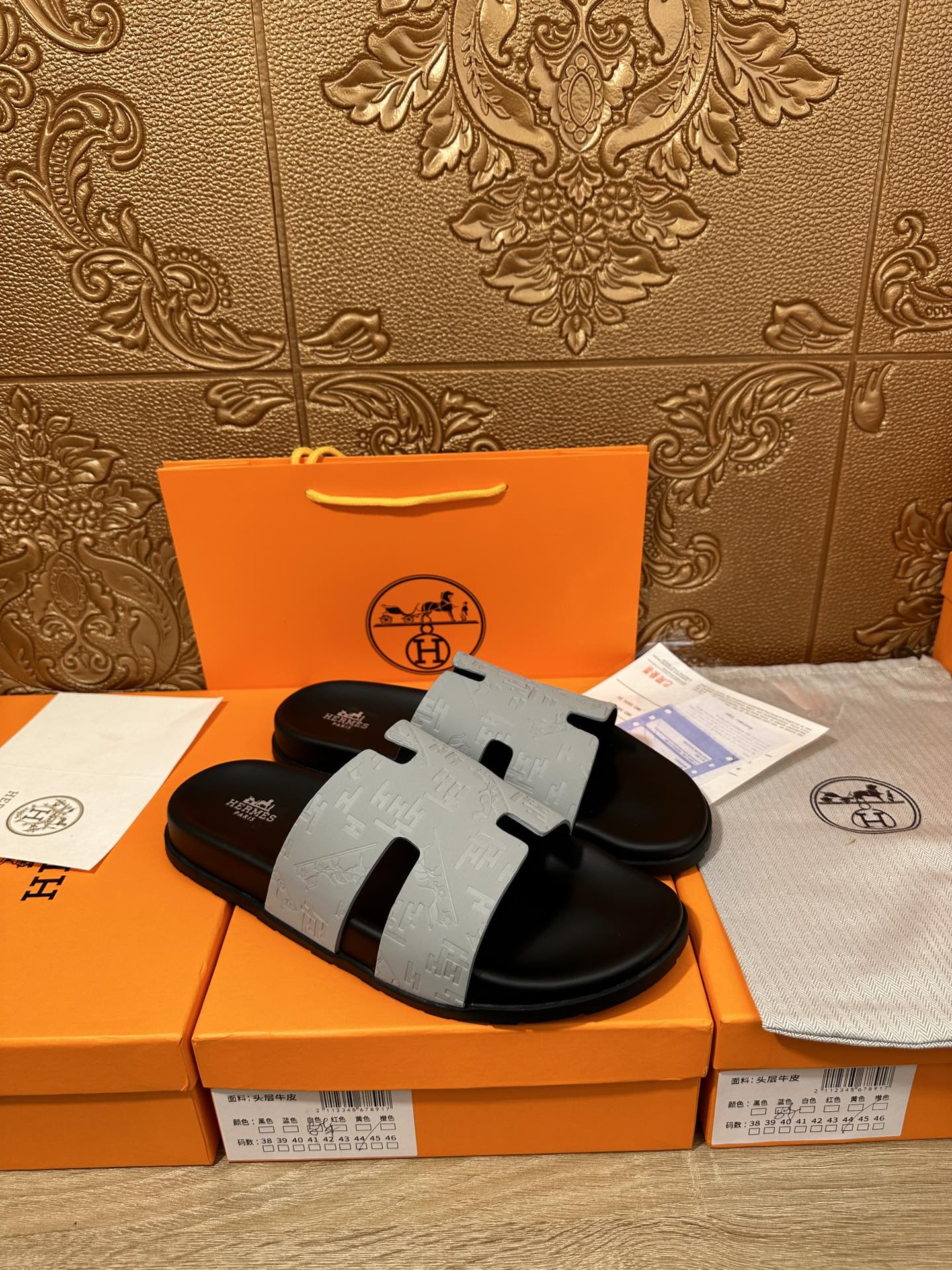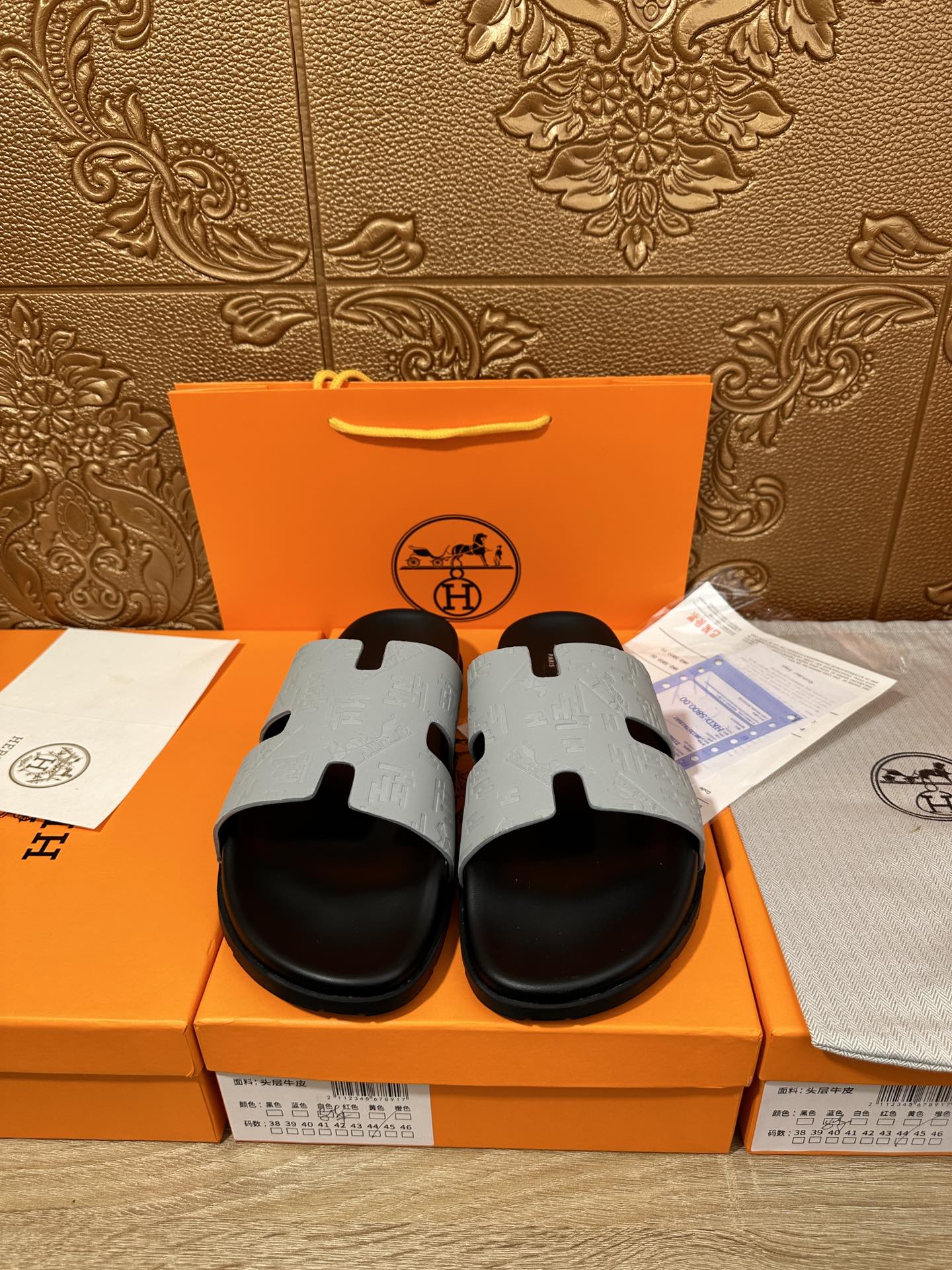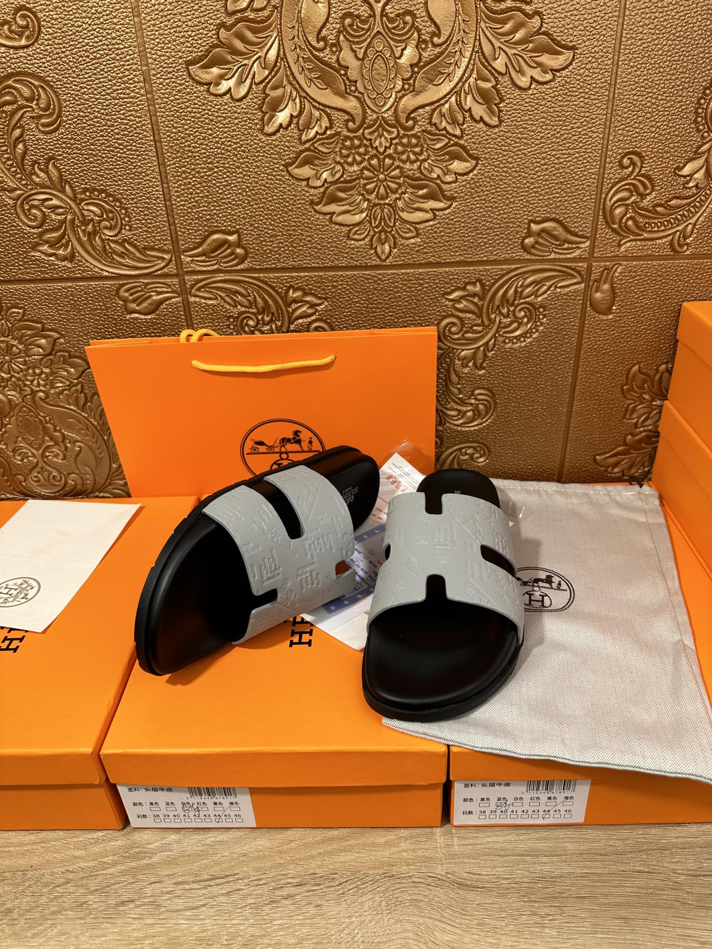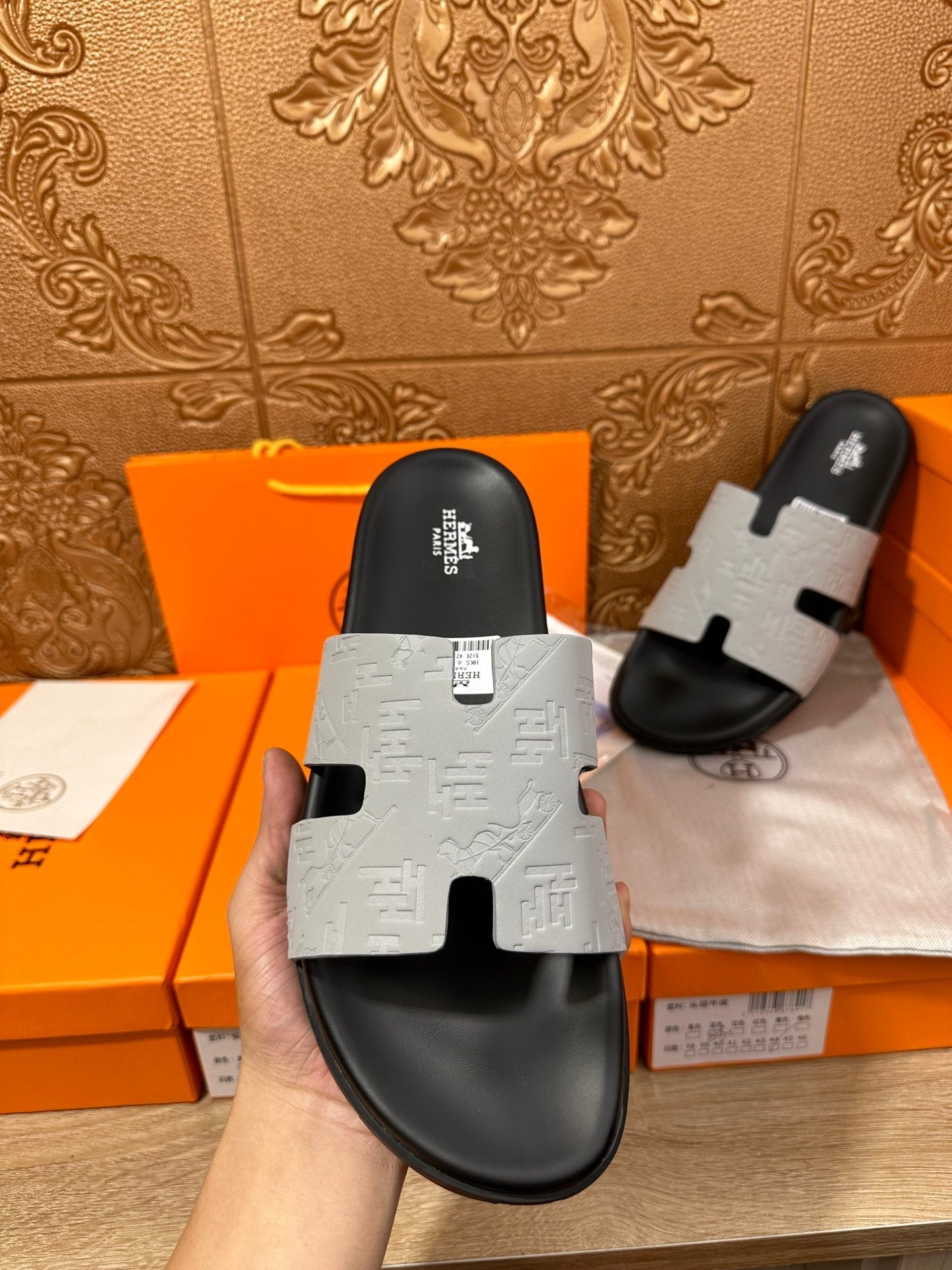 HM IZMIR SLIPPER LIGHT GRAY CALFSKIN