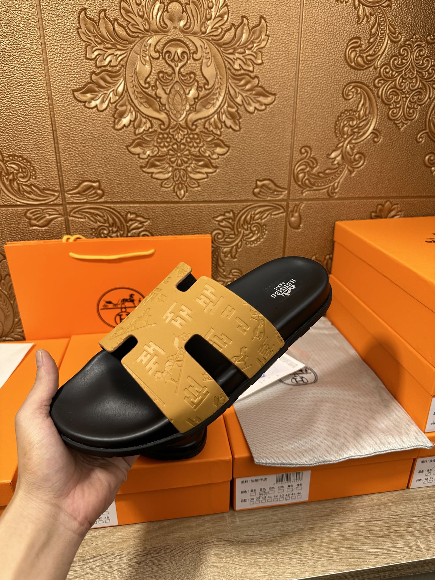 HM IZMIR SLIPPER SAFFRON AND BLACK CALFSKIN