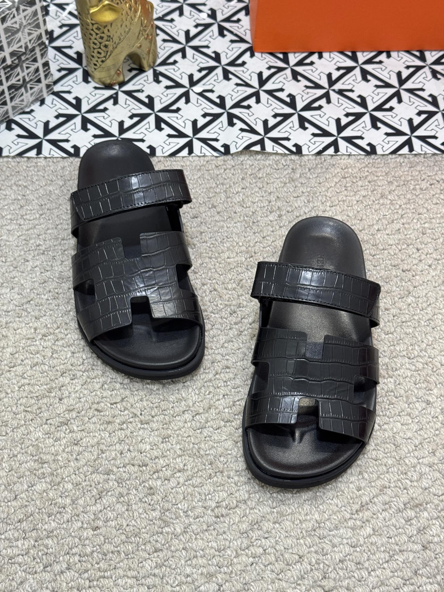 HM Men's Chypre Slide Black Cowhide 542930