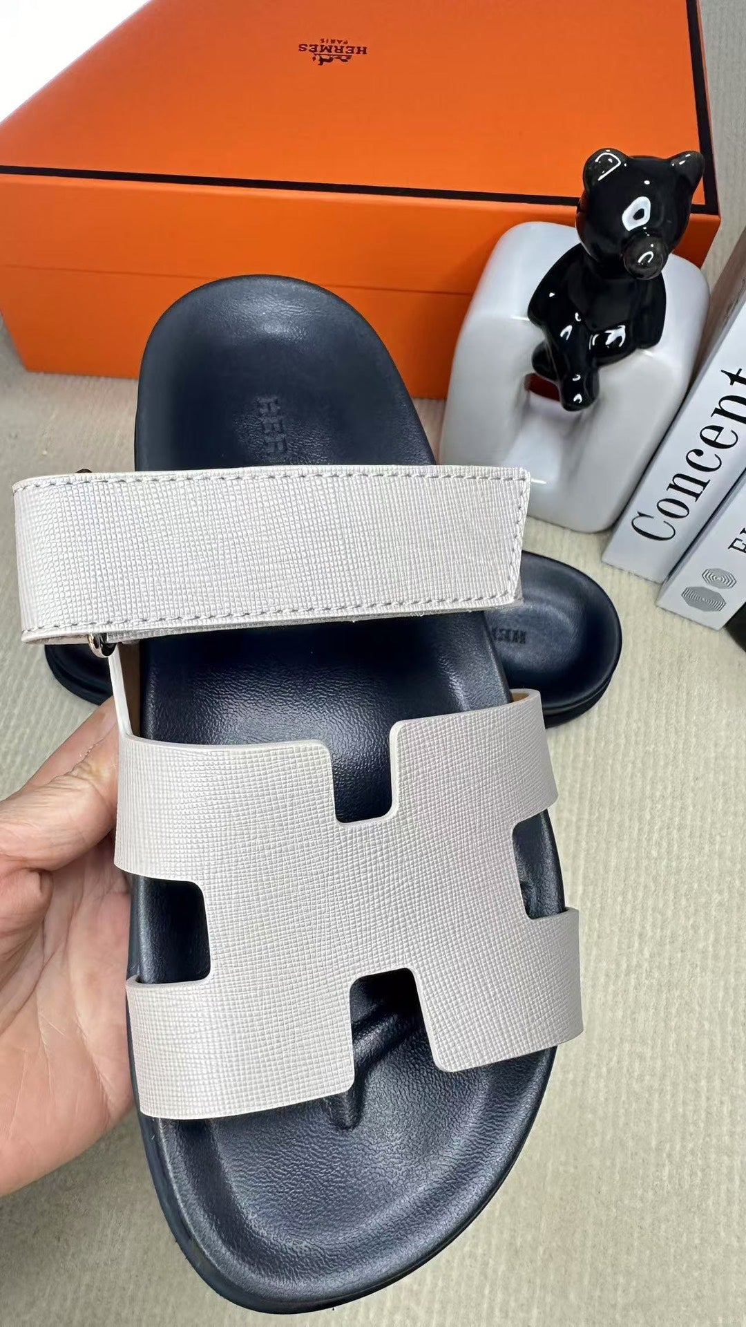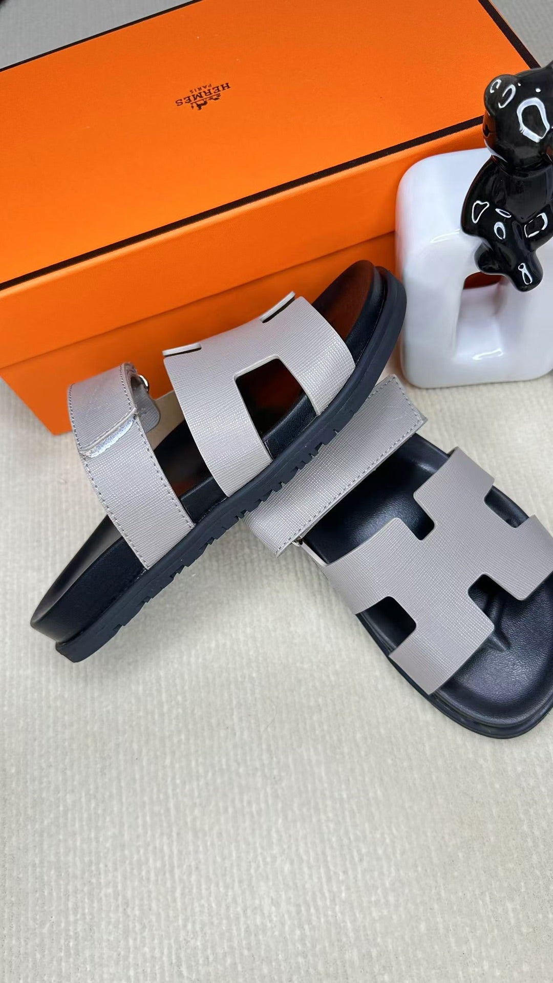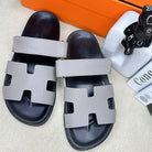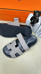 HM Men's Chypre Slide Black Grey Cowhide 540211