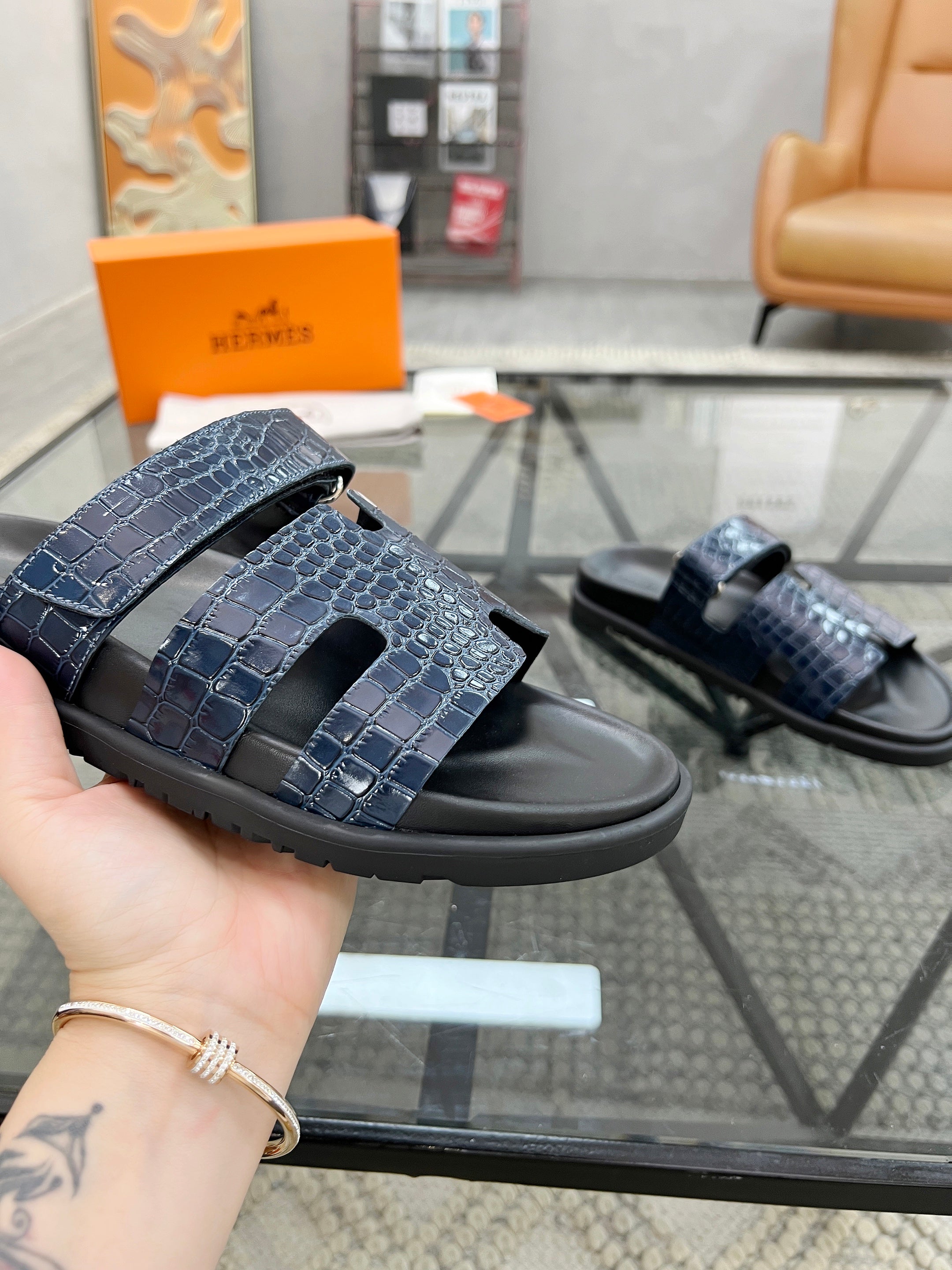 HM Men's Chypre Slide Navy Blue Cowhide 544583