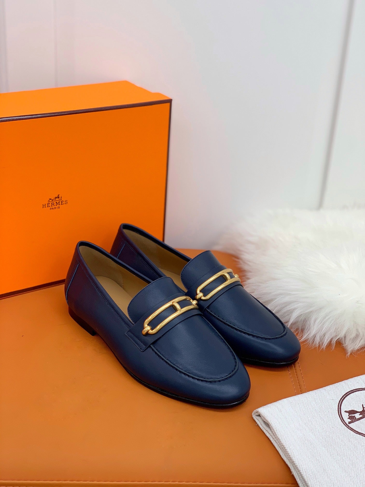 HM Men's Colette Loafer Navy Blue Cowhide GHW 546344