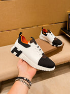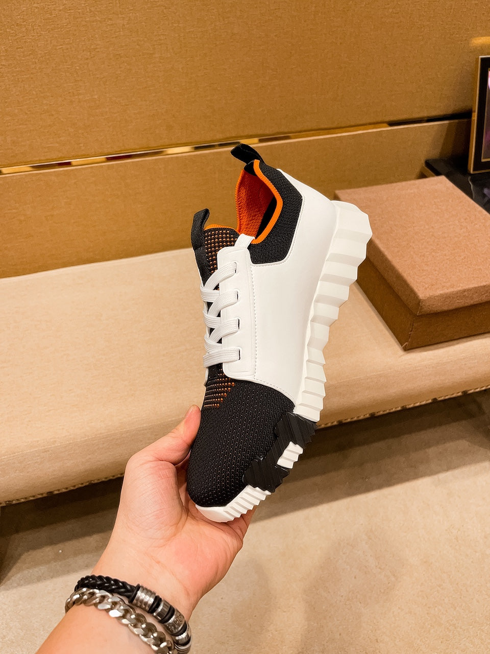 HM Men's Depart Slip-on Sneaker White Black Knit Cowhide 541299