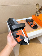 HM Men's Izmir Slide Orange Black Calfskin 744002
