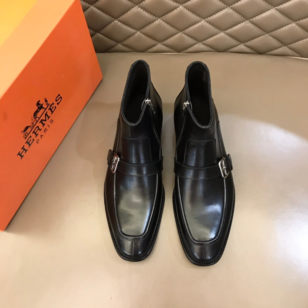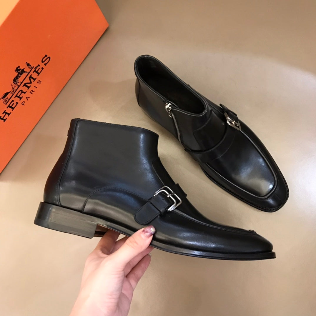 HM Men's Monk Boot Black Cowhide 527897