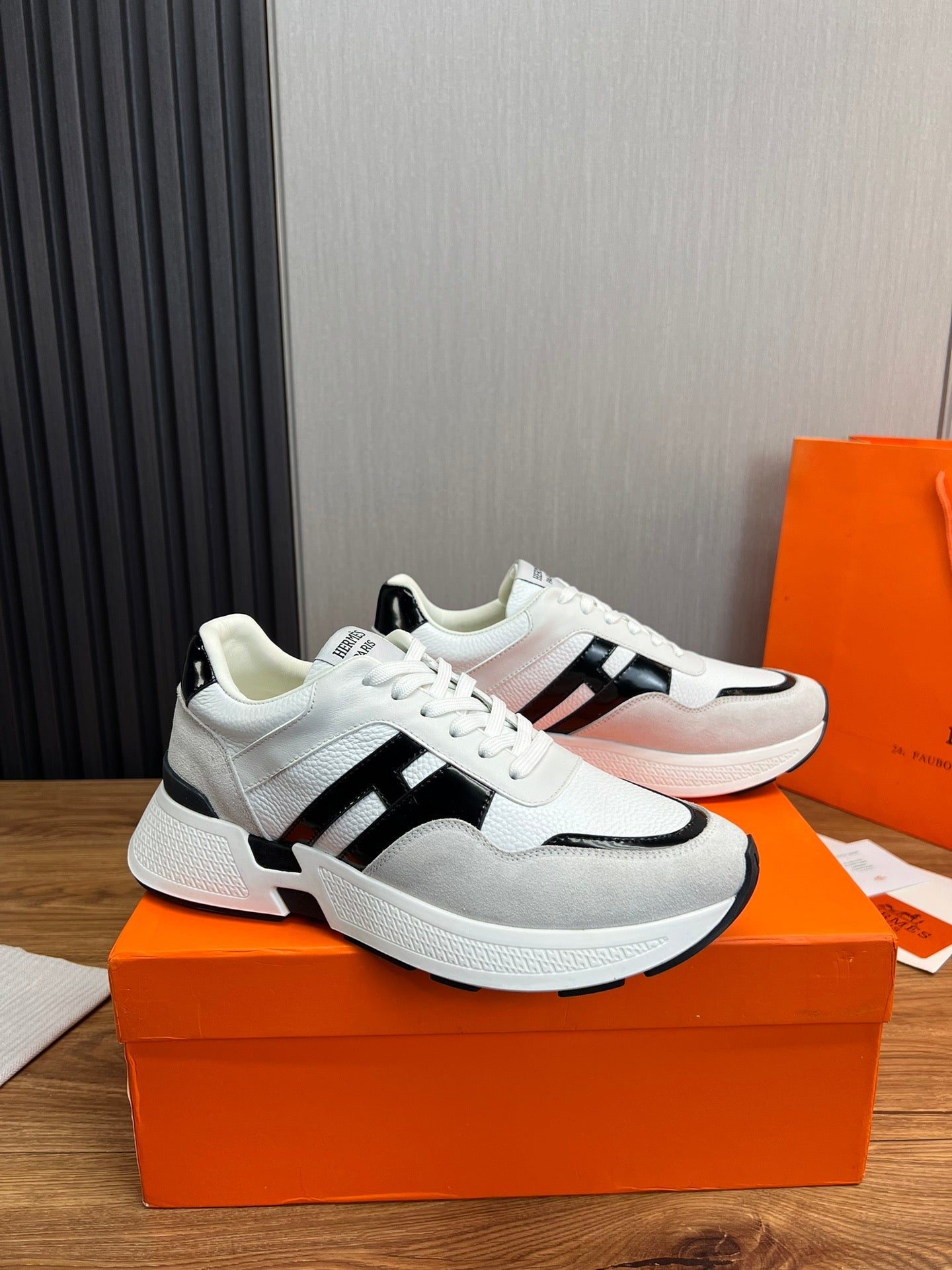 HM Men's Sneaker White Black Cowhide Suede 936373