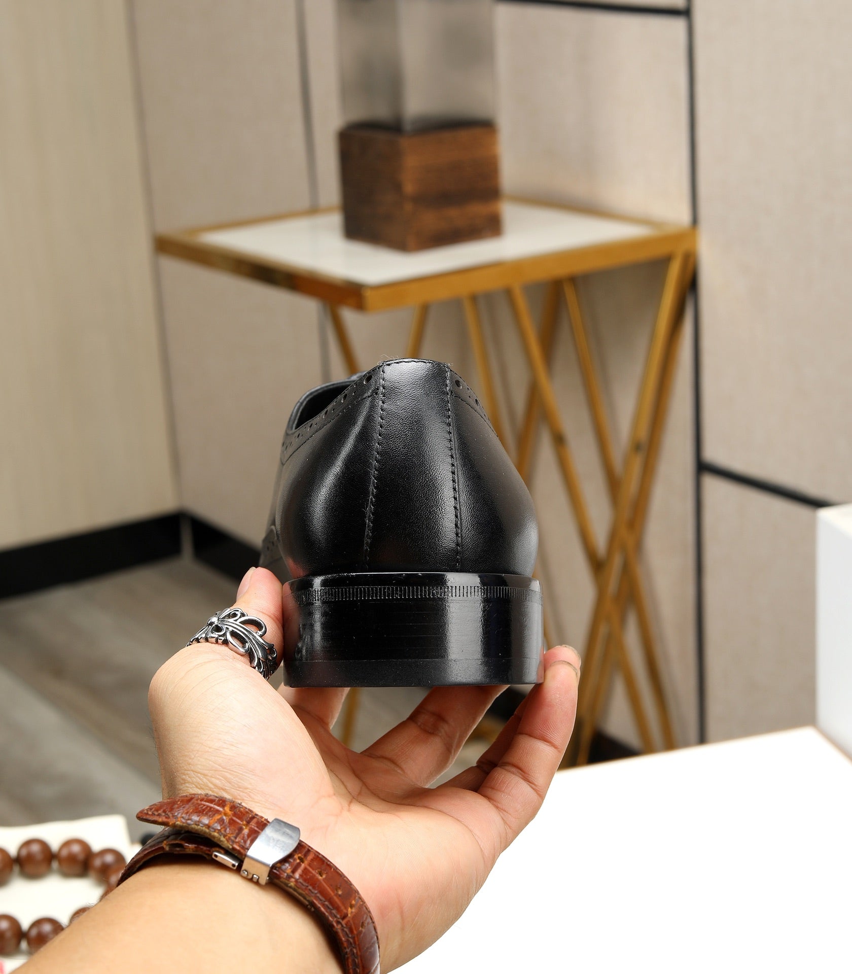 HM OXFORD LACE-UP BLACK WITH PATTERN CALFSKIN