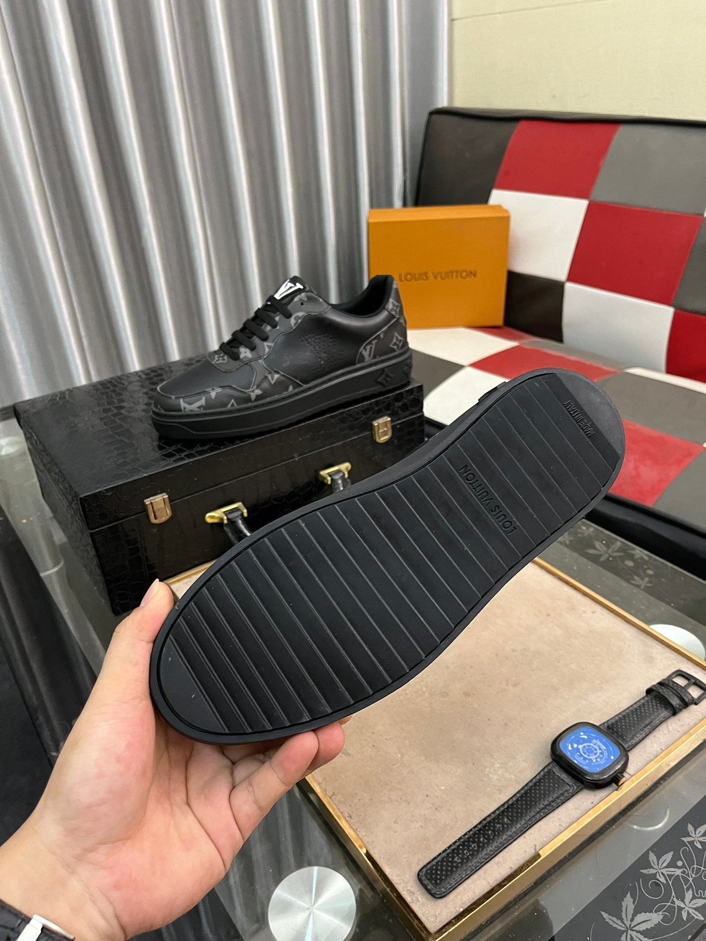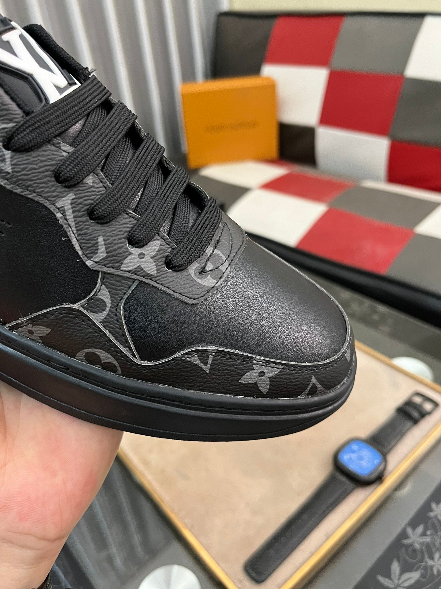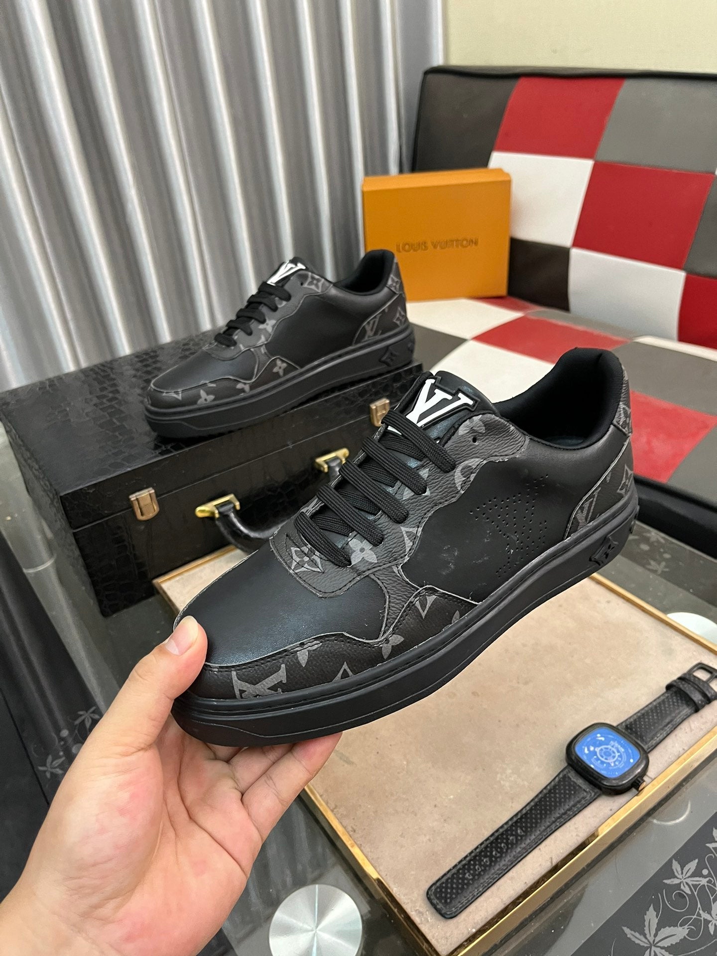 LV CLASSIC TRAINER SHOES IN BLACK CALFKSIN AND SUEDE