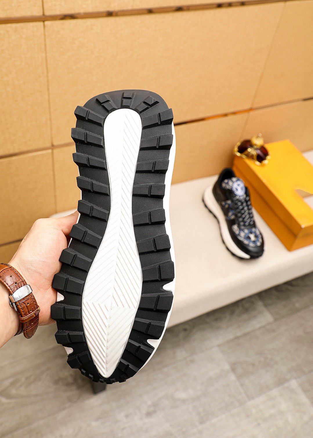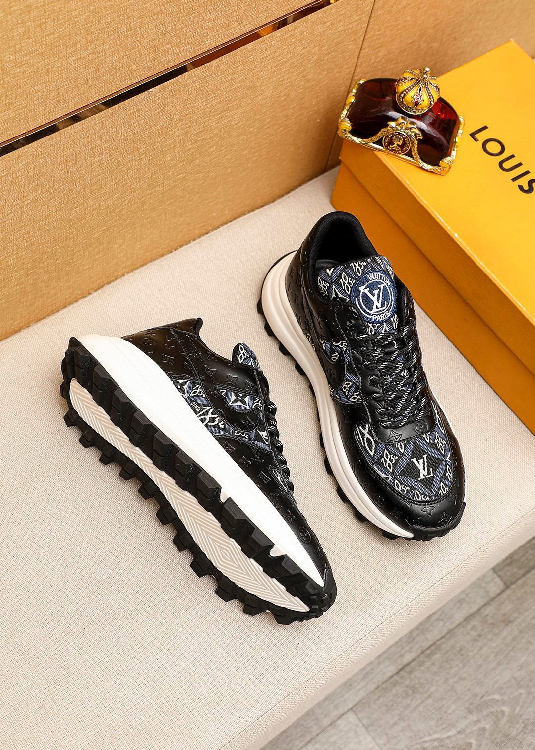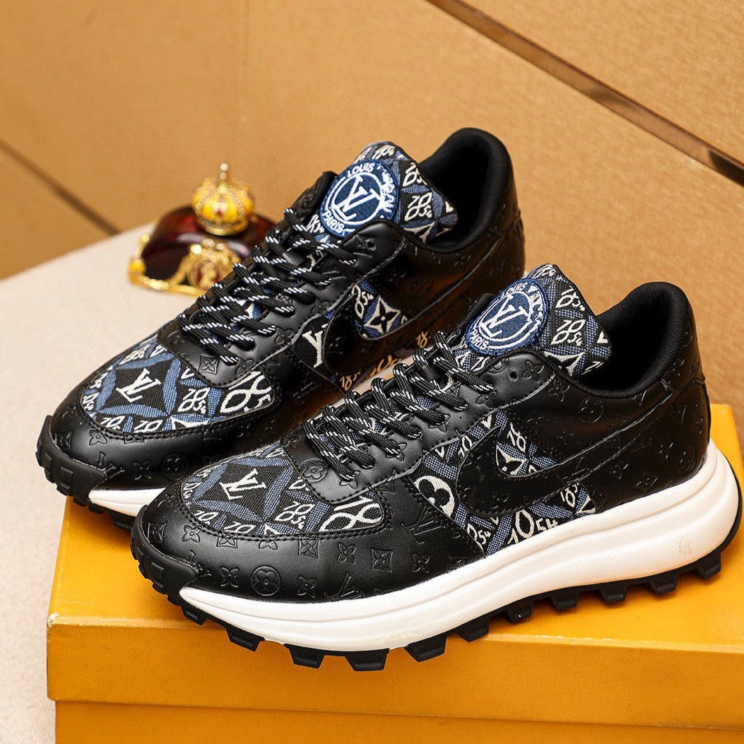 LV HIGH-END CLASSIC BLACK AND WHITE SUEDE MEN'S SHOES