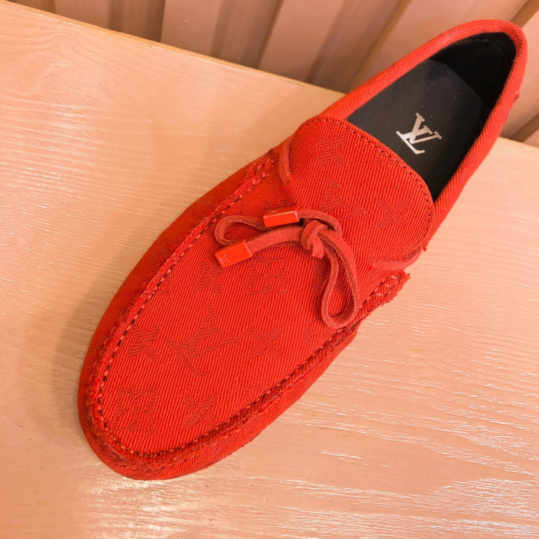LV LOAFER IN CRIMSON RED MONOGRAM DENIM WITH BOW