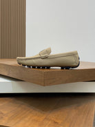 LV LOAFER IN DARK CREAM WRINKLE CALFSKIN WITH SILVER LOGO