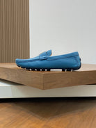 LV LOAFER IN ELECTRIC BLUE WRINKLE CALFSKIN WITH SILVER LOGO