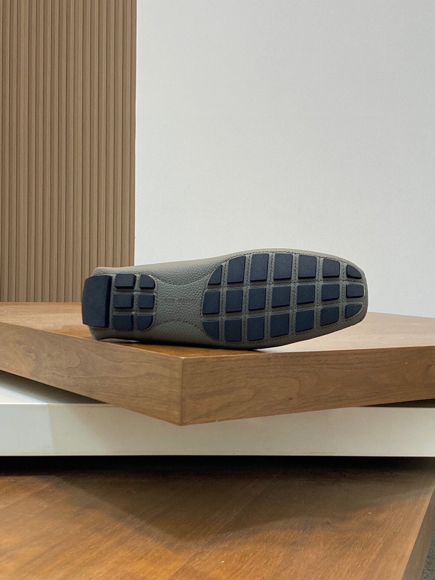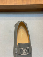 LV LOAFER IN SARDINE GREY WRINKLE CALFSKIN WITH SILVER LOGO