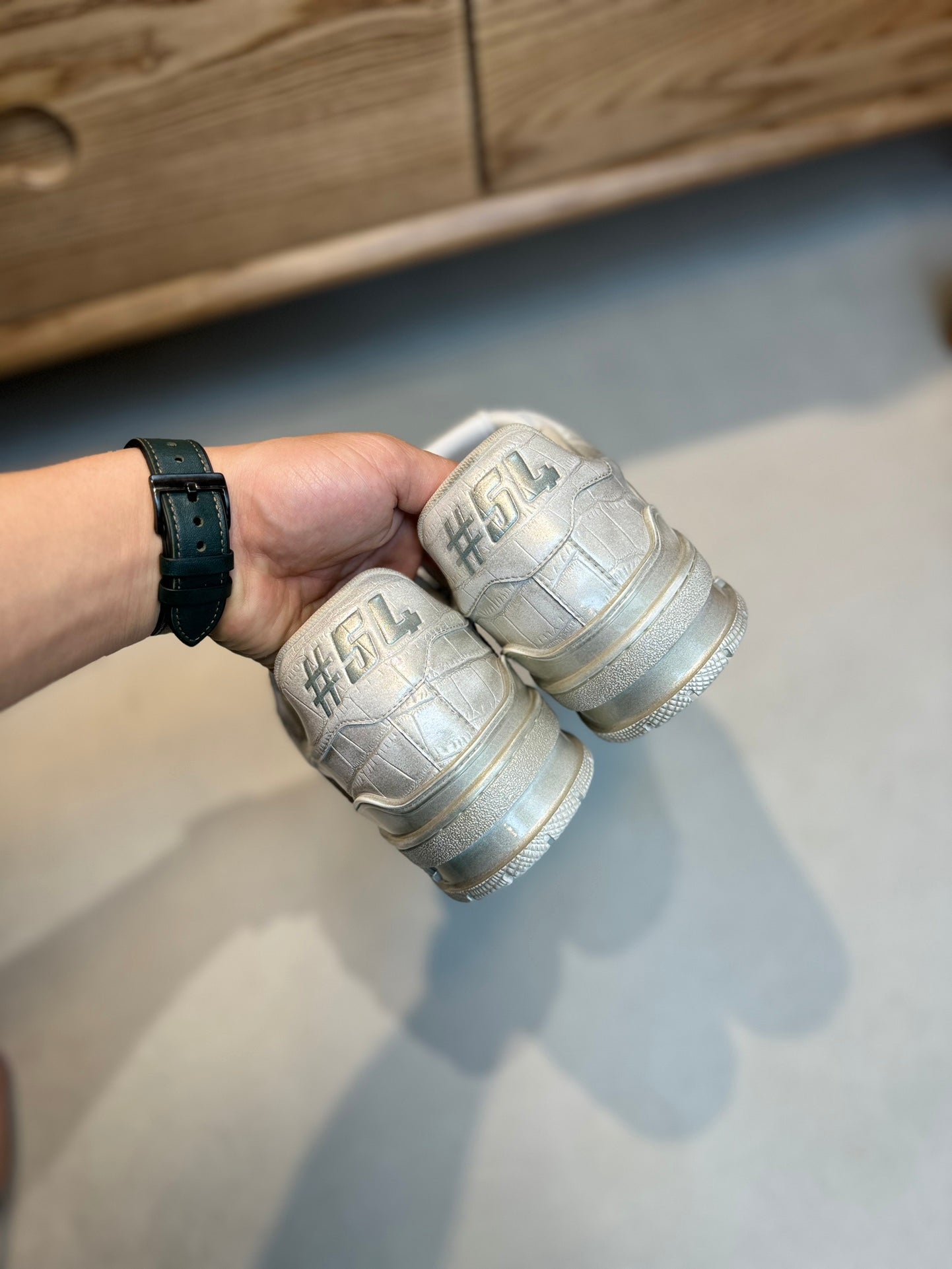 • Upper: "Stone grain cowhide, color-changing technique, with plastic logo on the upper and tongue of the shoe."