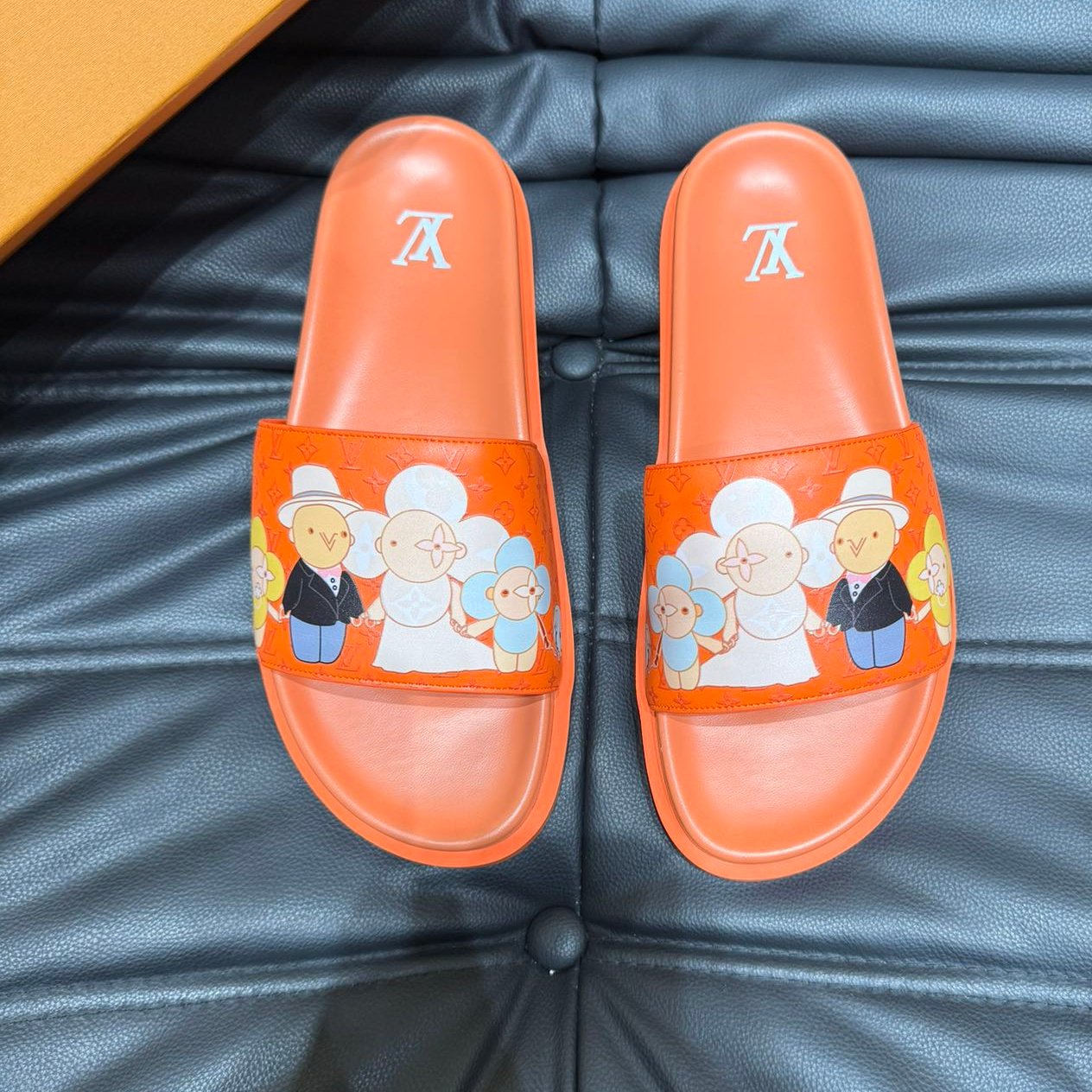 LV SLIPPERS IN CARROT ORANGE MONOGRAM CALFSKIN